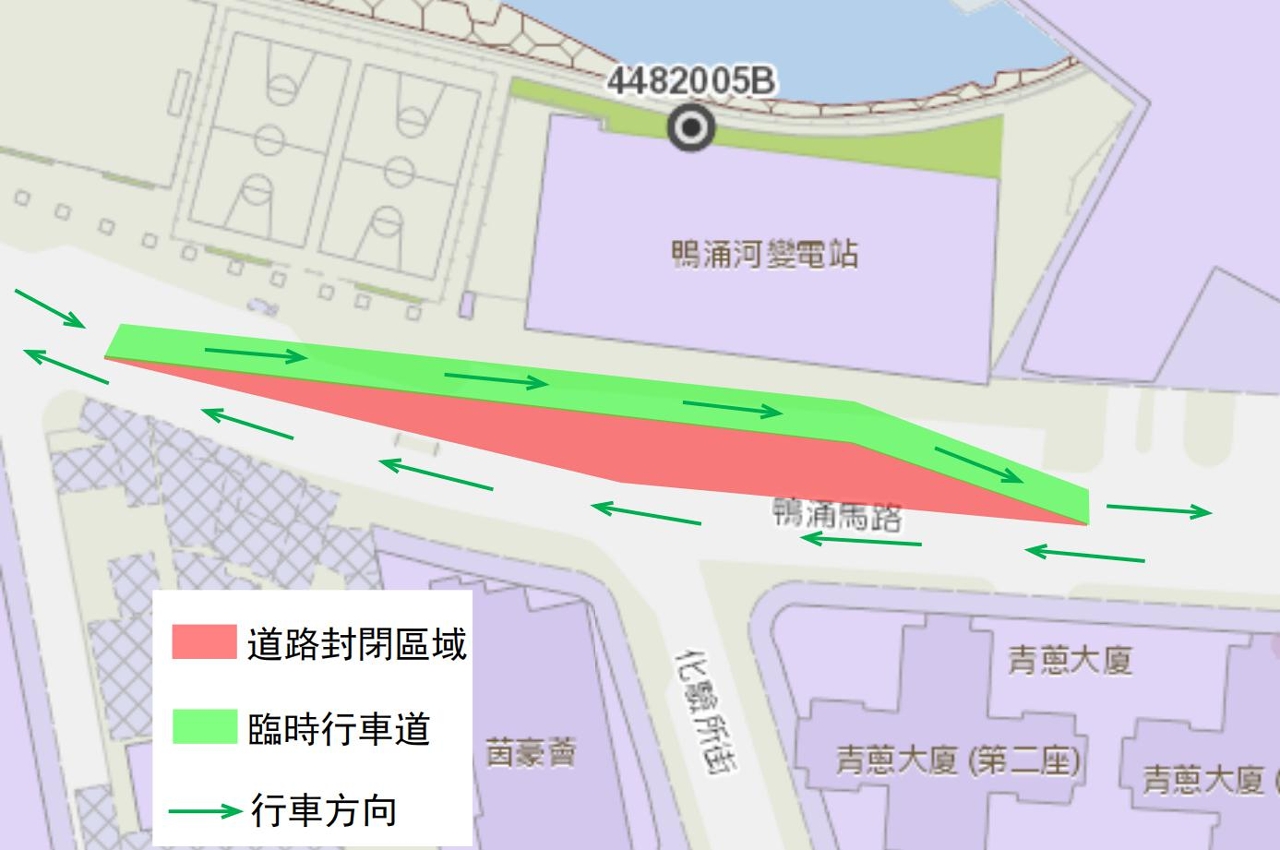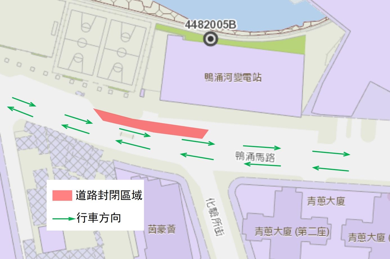 (1) Durante o período entre os dias 1 de Dezembro de 2021 e 8 de Fevereiro de 2022, as medidas de condicionamento de trânsito serão implementadas na faixa de rodagem esquerda da Estrada do Canal dos Patos em direcção à Avenida do Comendador Ho Yin, e os veículos devem utilizar a faixa de rodagem da via rápida (vide desenho 1).