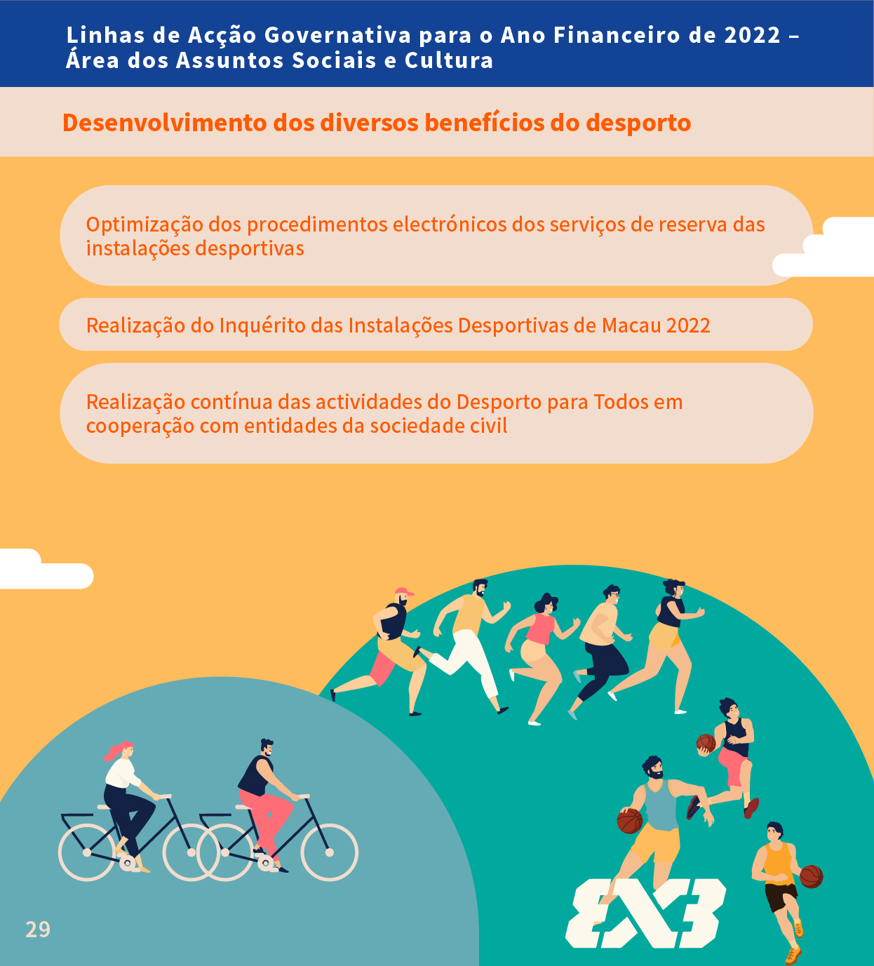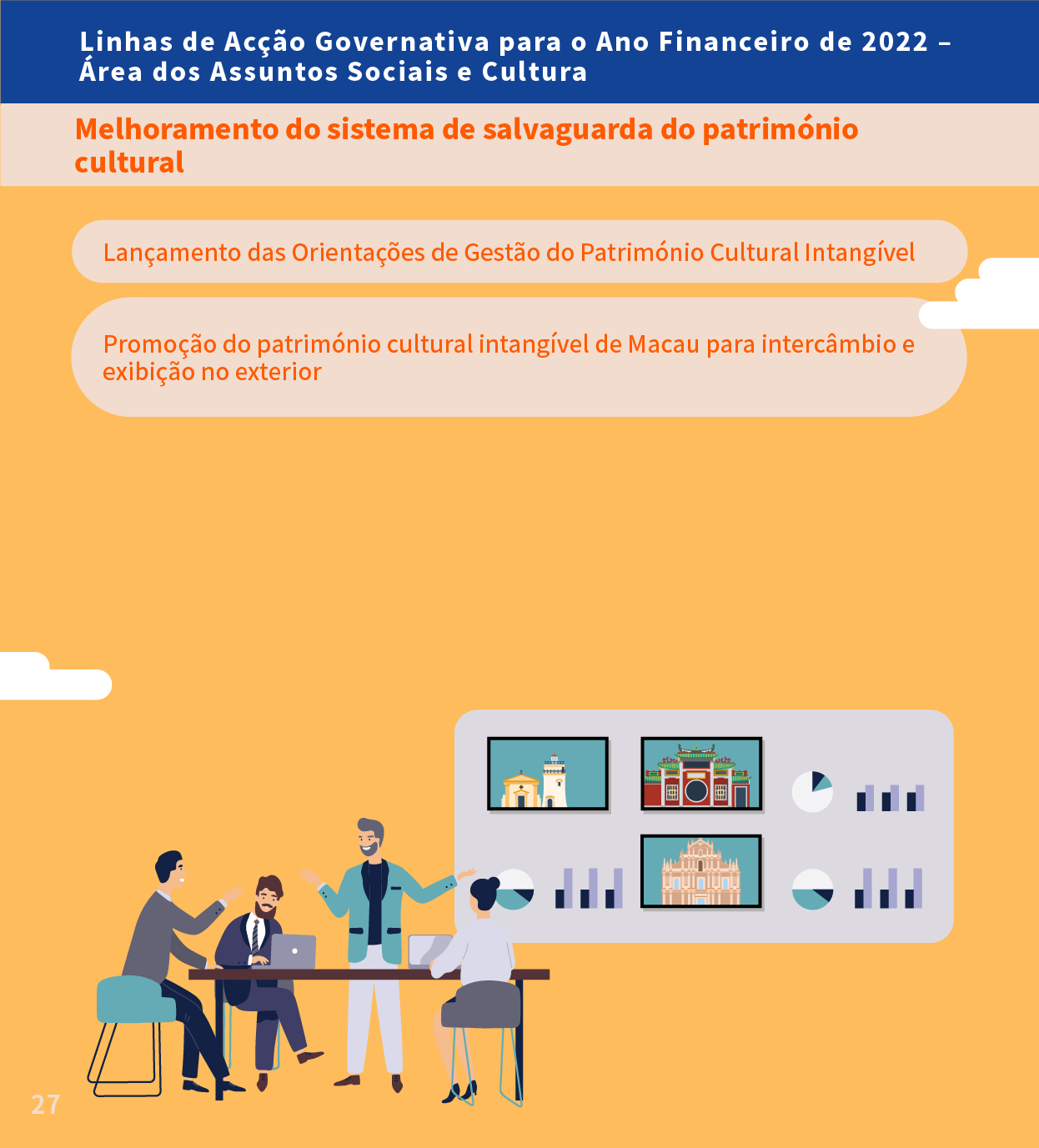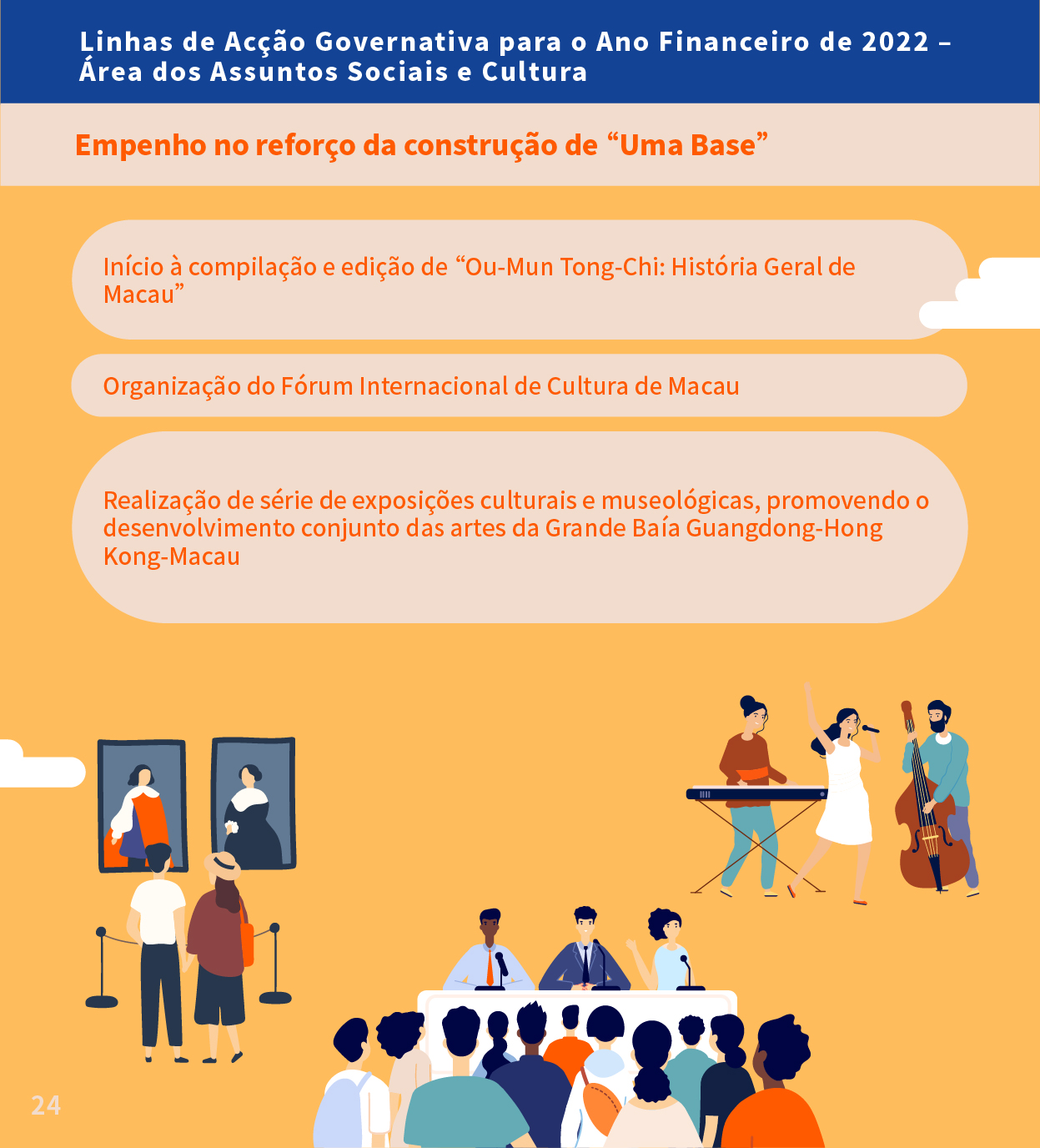 Infografia das Linhas de Acção Governativa para o Ano Financeiro de 2022 na Área dos Assuntos Sociais e Cultura - Nos domínios da Cultura e do Desporto