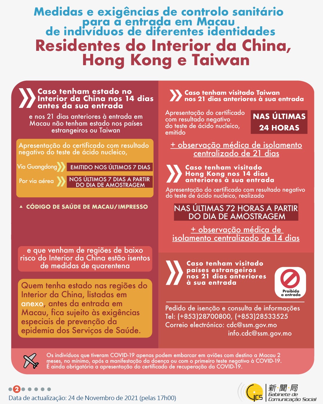 • Medidas e exigências de controlo sanitário para a entrada em Macau de indivíduos de diferentes identidades.