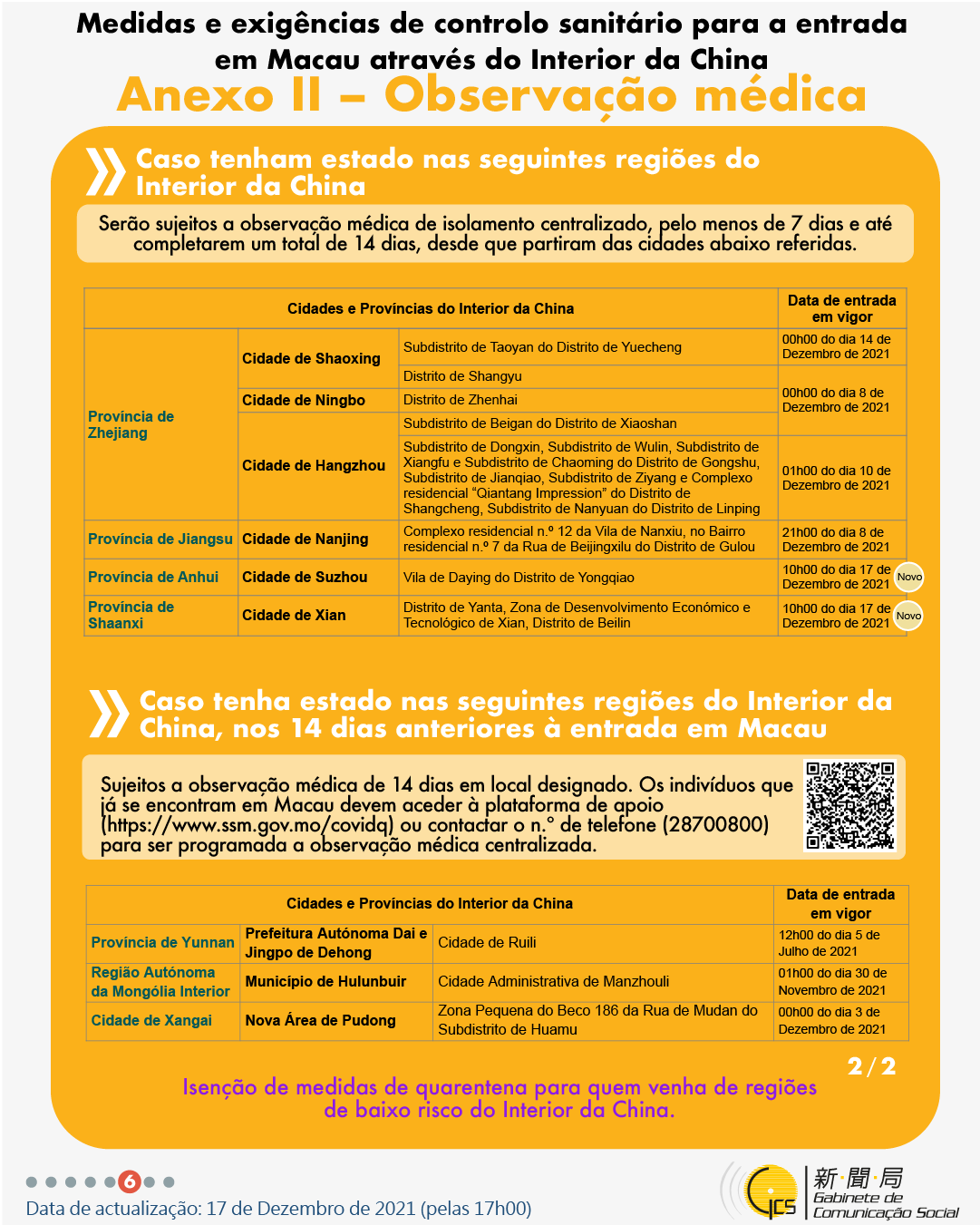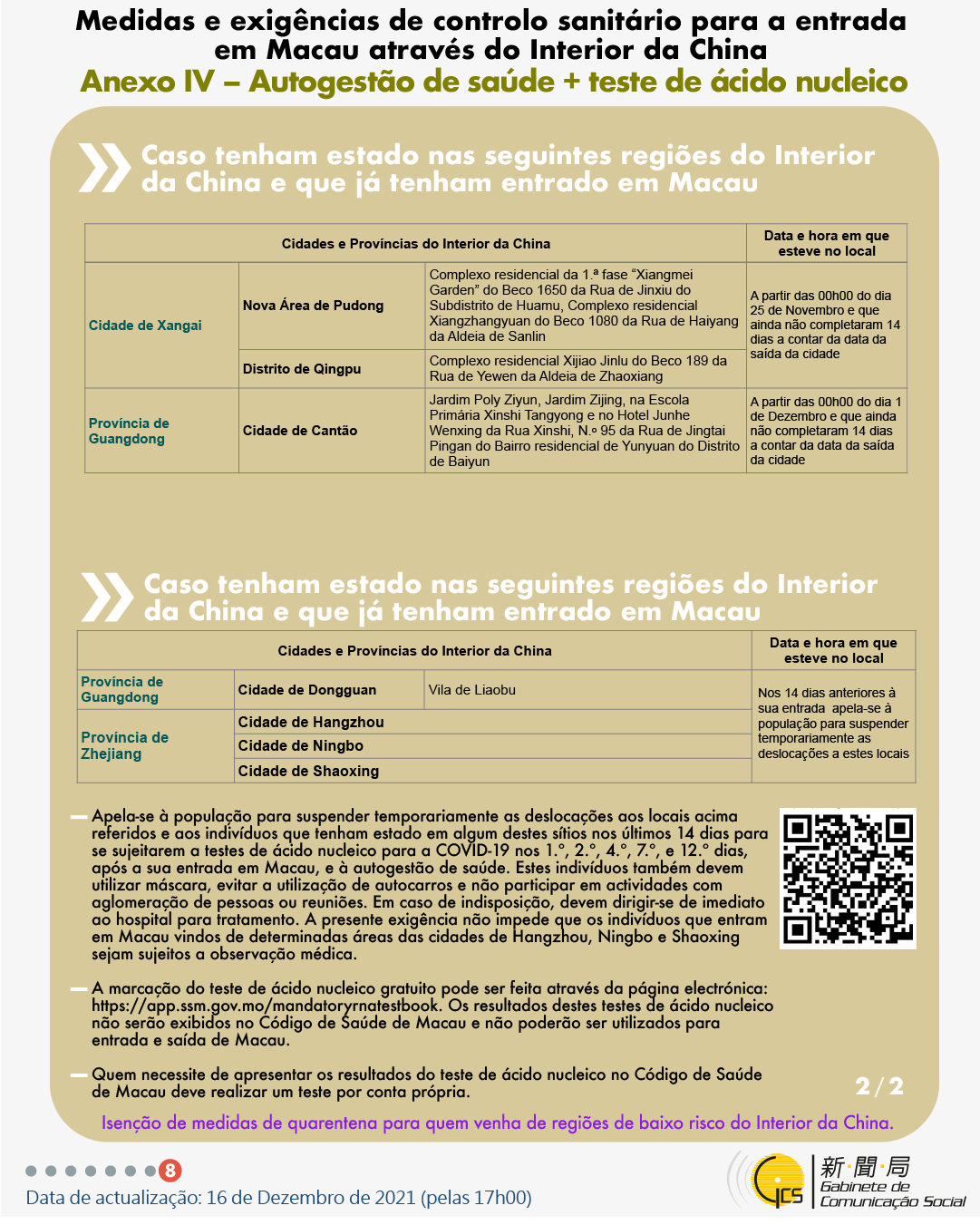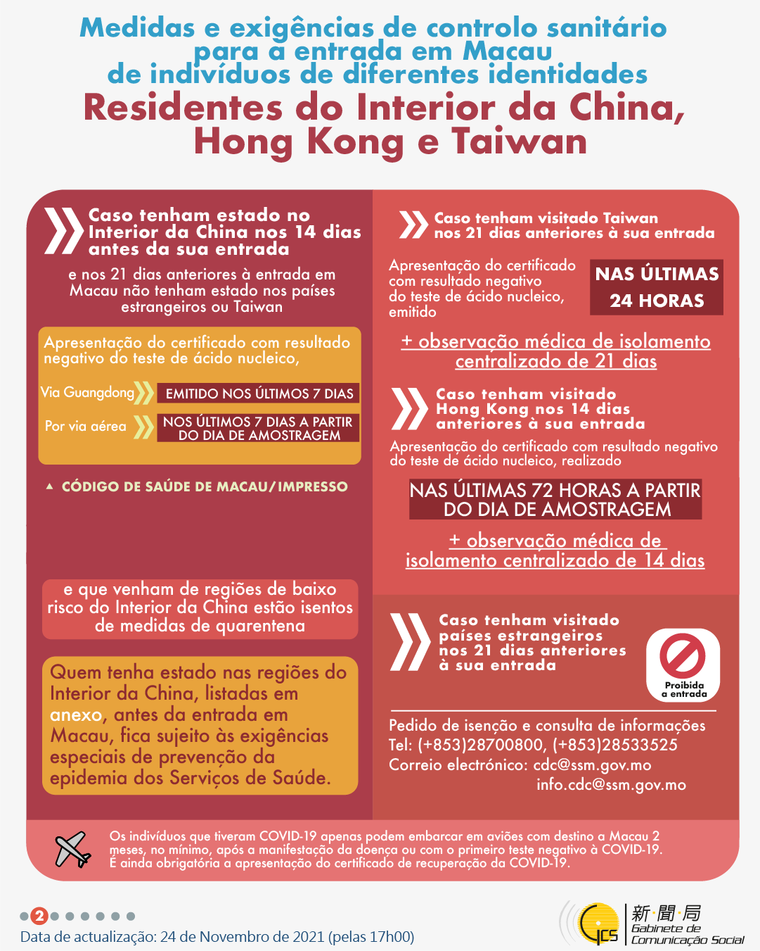 (Infografia)Medidas e exigências de controlo sanitário para a entrada em Macau de indivíduos de diferentes identidades, actualizadas no dia 17 de Dezembro de 2021