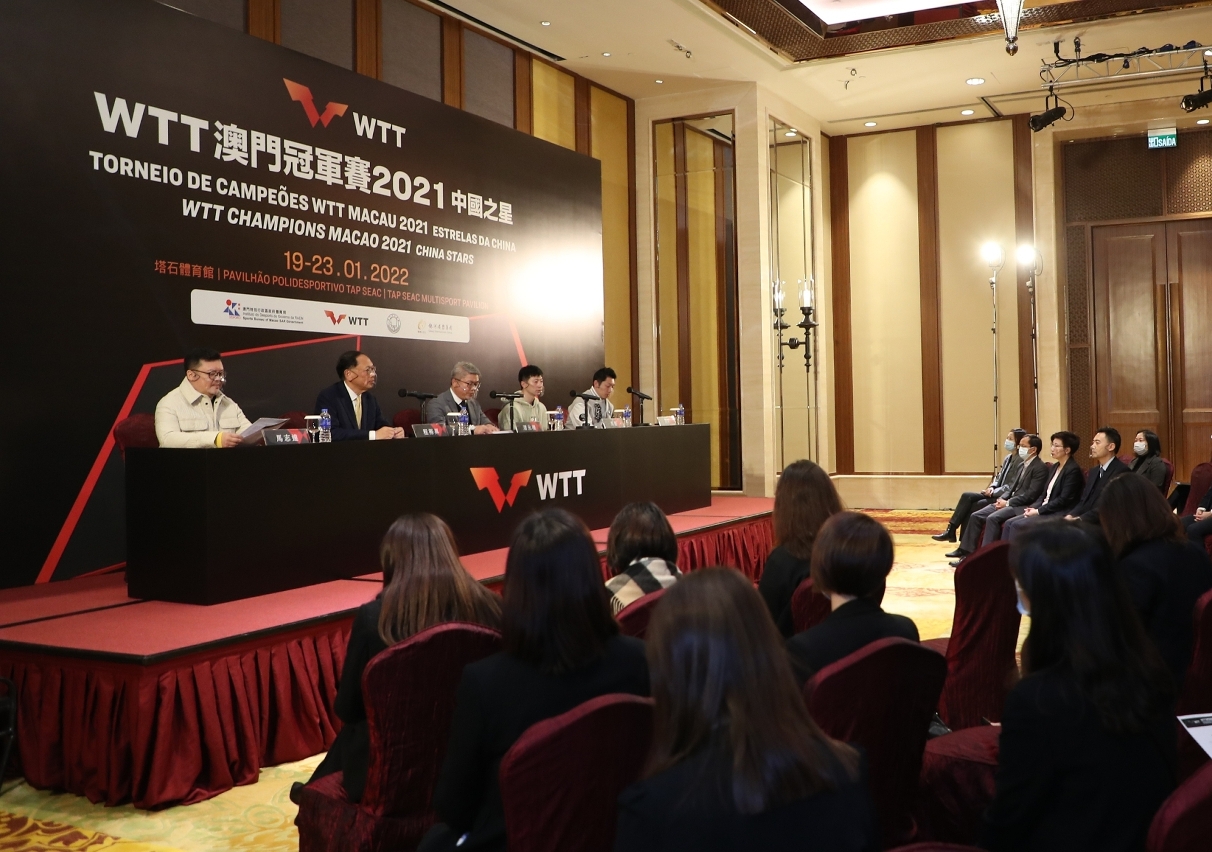 Organizado pelo Instituto do Desporto, pela World Table Tennis (WTT) e co-organizado pela Associação Geral de Ping-Pong de Macau, o “Torneio de Campeões WTT Macau 2021 Estrelas da China” terá lugar de 19 a 23 de Janeiro no Pavilhão Polidesportivo Tap Seac. Realizou-se hoje (dia 21) a conferência de imprensa onde se divulgaram ao público informações sobre o evento. Os convidados presentes incluíram o presidente do Instituto do Desporto, Pun Weng Kun, o director do Grupo Galaxy Entertainment, Philip Cheng, o presidente da Associação Geral de Ping-Pong de Macau, João Ma Chi Tat e os campeões olímpicos e jogadores de ténis de mesa chineses, Ma Long e Xu Xin.
