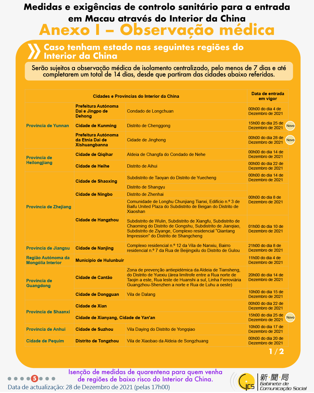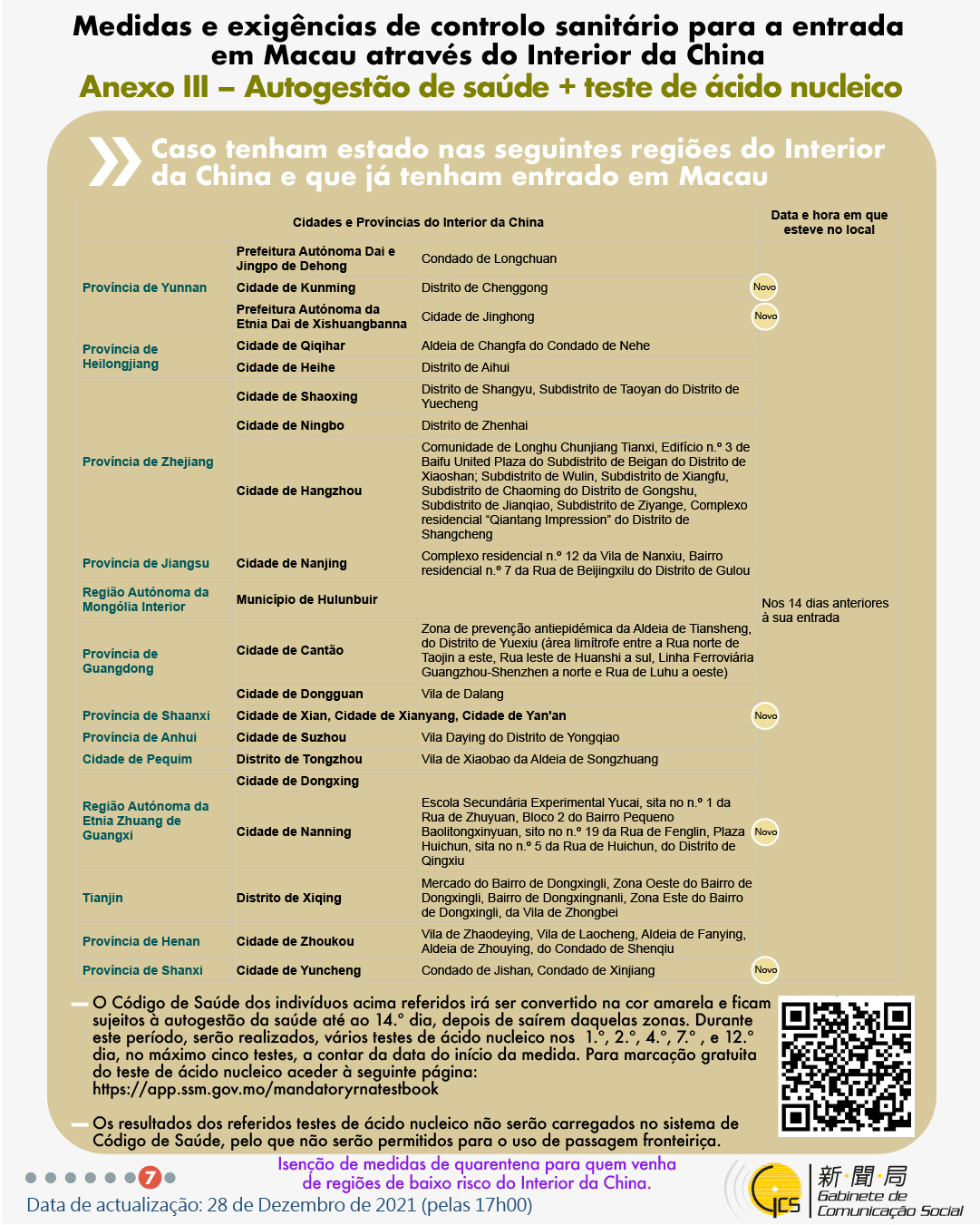 (Infografia)Medidas e exigências de controlo sanitário para a entrada em Macau de indivíduos de diferentes identidades, actualizadas no dia 28 de Dezembro de 2021