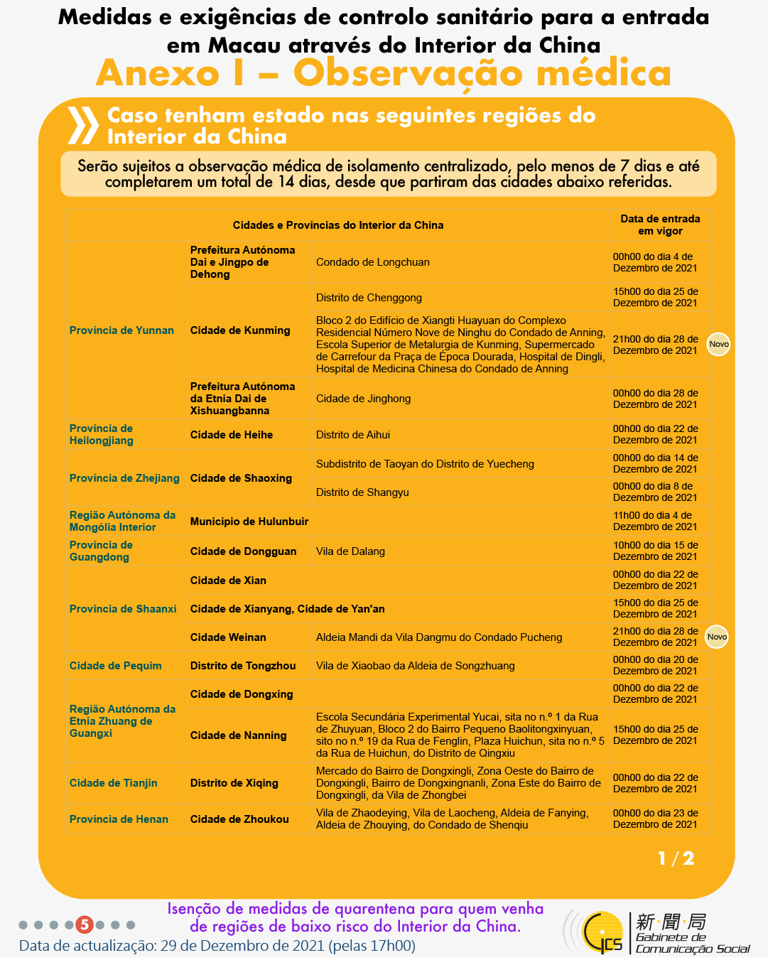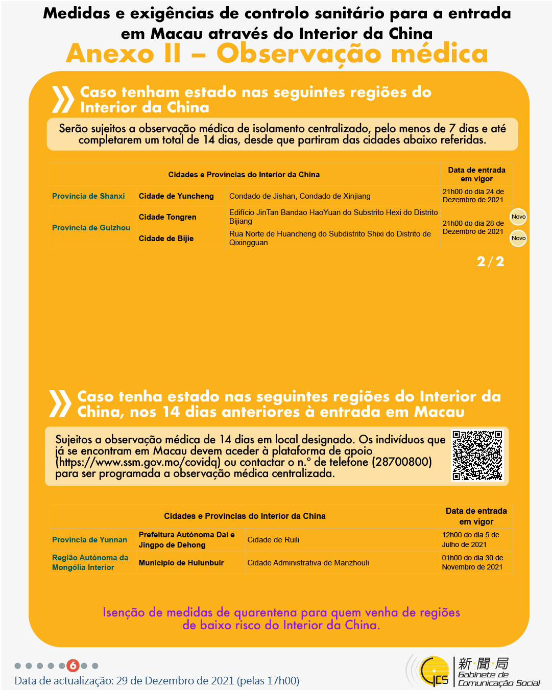 (Infografia)Medidas e exigências de controlo sanitário para a entrada em Macau de indivíduos de diferentes identidades, actualizadas no dia 29 de Dezembro de 2021