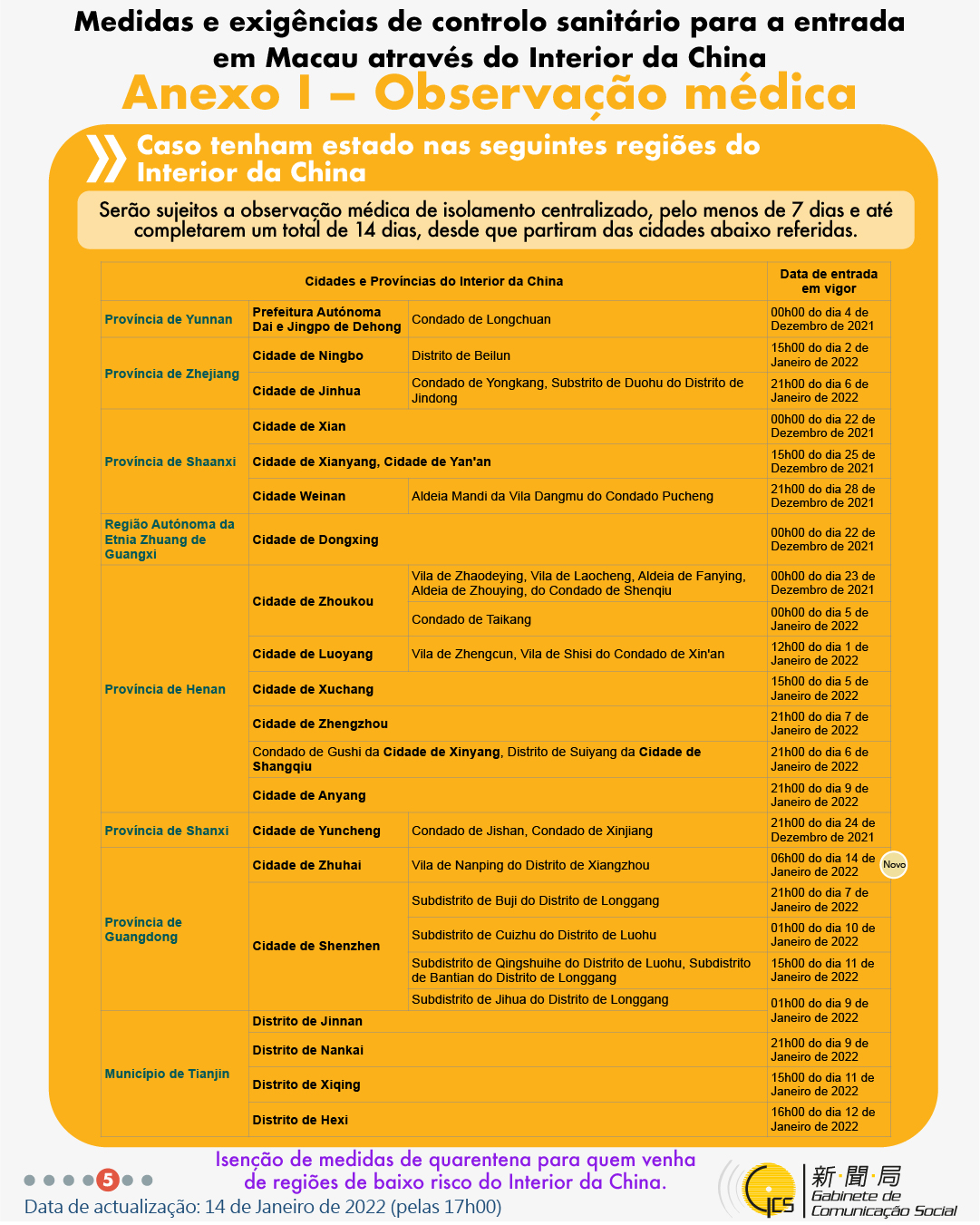 (Infografia)Medidas e exigências de controlo sanitário para a entrada em Macau de indivíduos de diferentes identidades, actualizadas no dia 14 de Janeiro de 2022