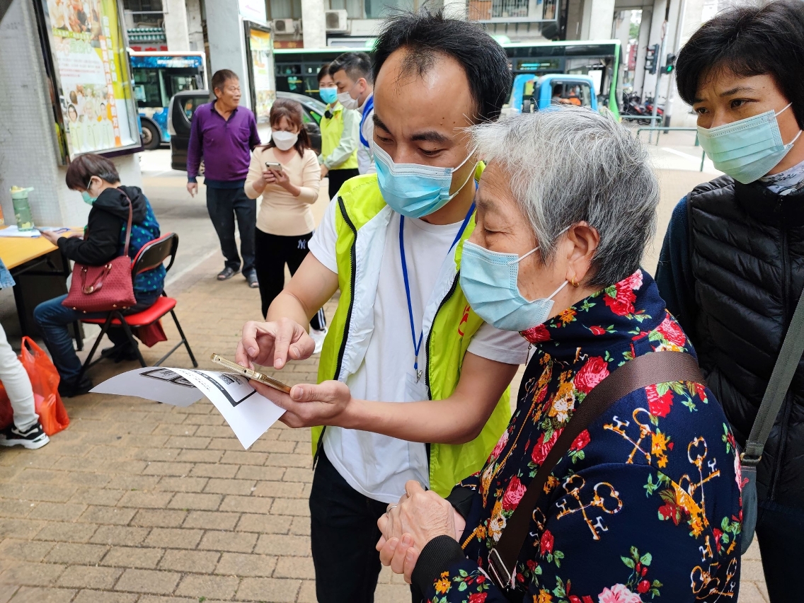 • 5. Os voluntários ajudam a população com necessidade de apoio, especialmente os idosos, para descarregar a aplicação móvel “Código de Saúde de Macau”.