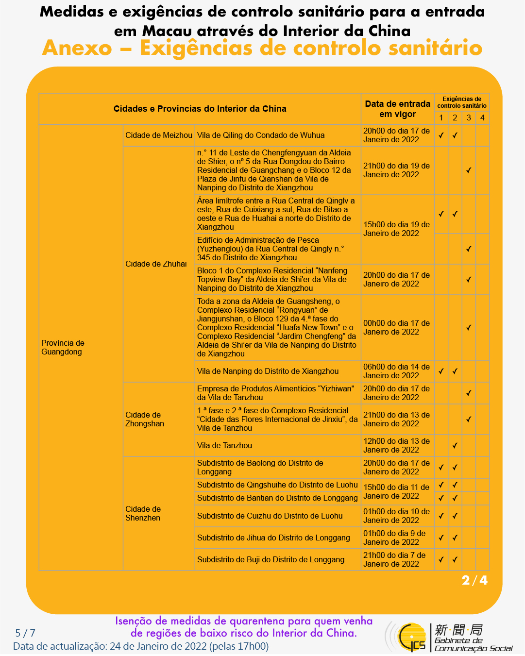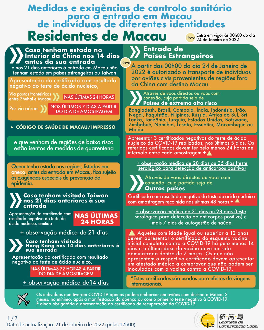 (Infografia)Medidas e exigências de controlo sanitário para a entrada em Macau de indivíduos de diferentes identidades, actualizadas no dia 24 de Janeiro de 2022