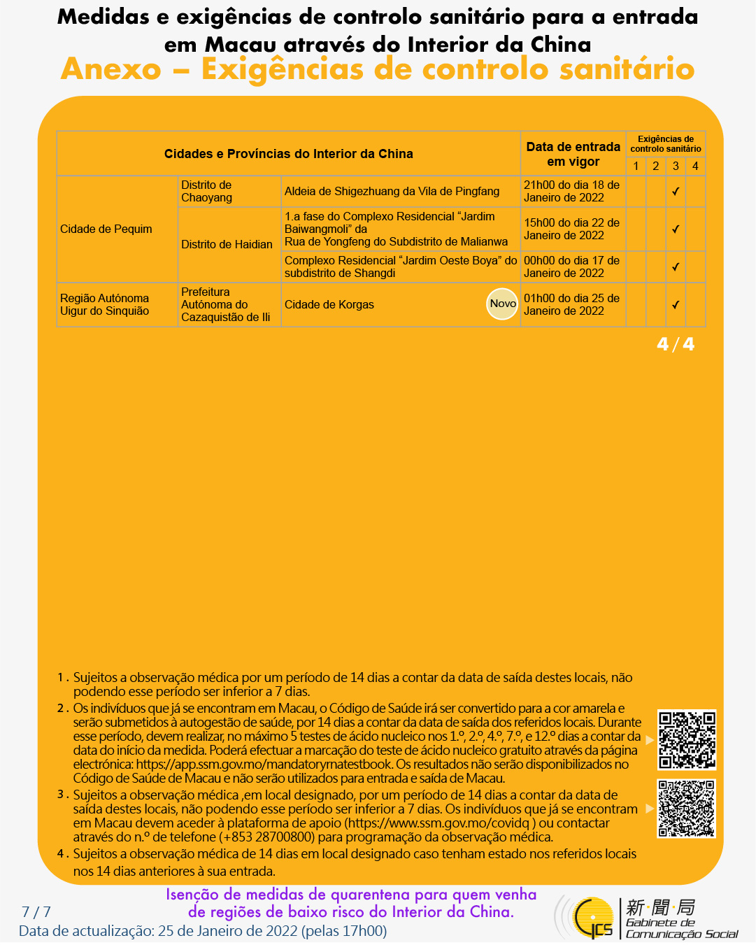(Infografia)Medidas e exigências de controlo sanitário para a entrada em Macau de indivíduos de diferentes identidades, actualizadas no dia 25 de Janeiro de 2022