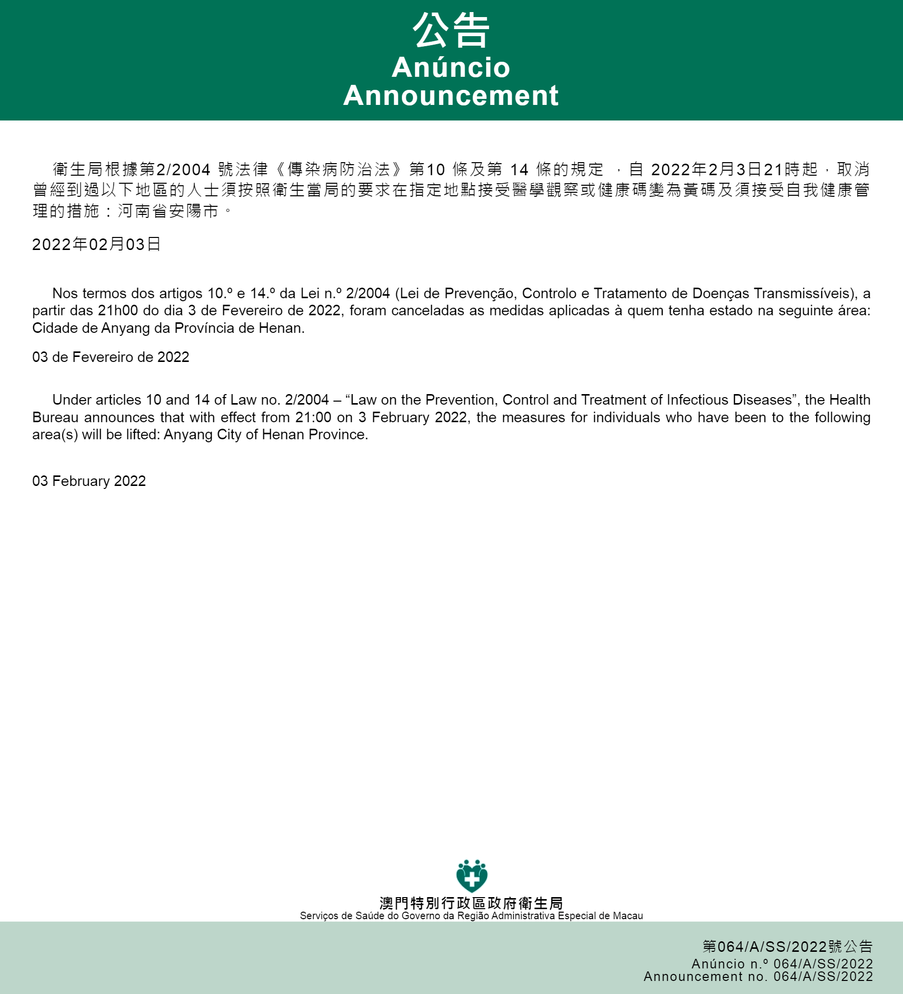 A partir das 00h00 do dia 4 de Dezembro de 2021 Anúncio n.º 220/A/SS/2021 |