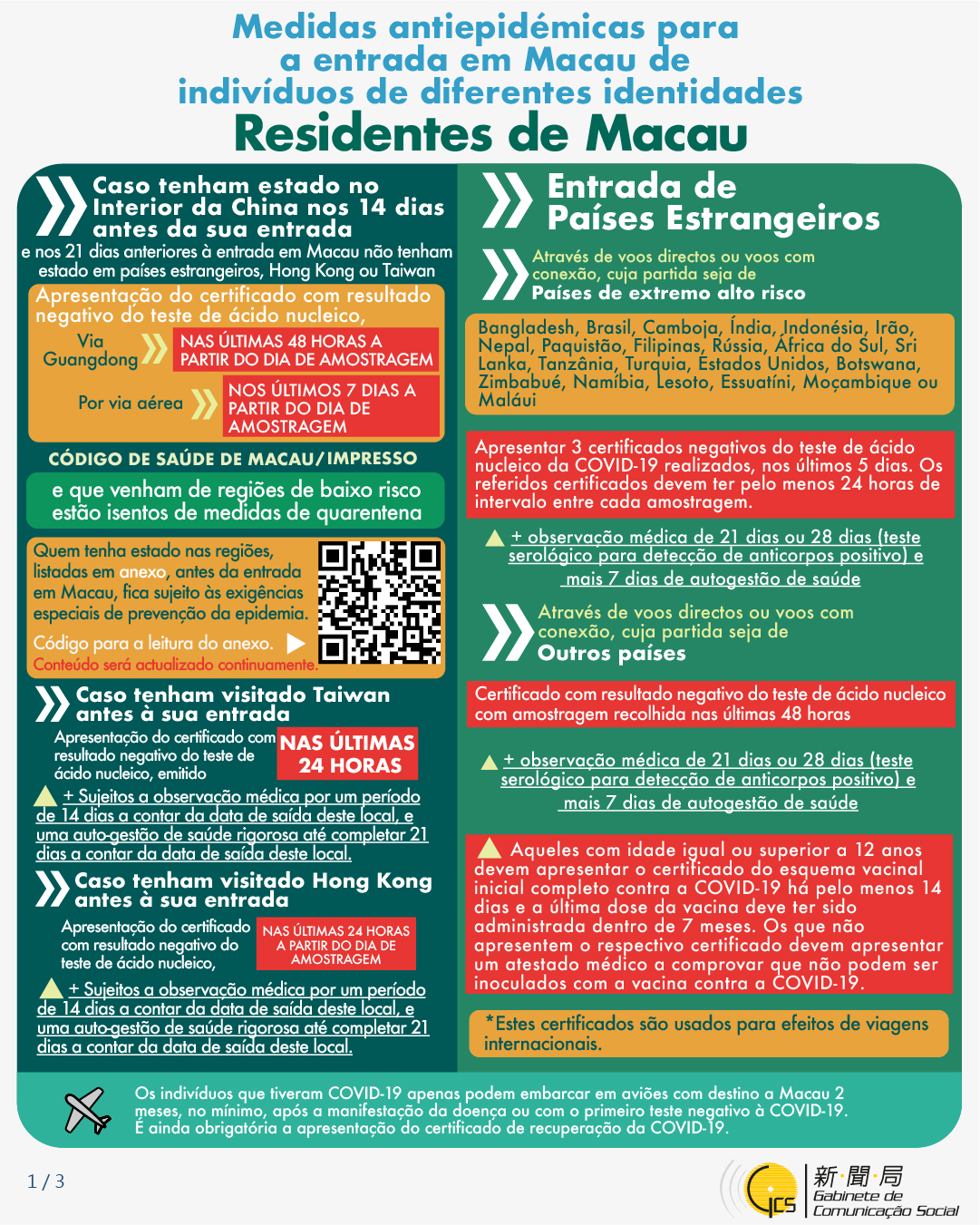 Medidas antiepidémicas para a entrada em Macau de indivíduos de diferentes identidades