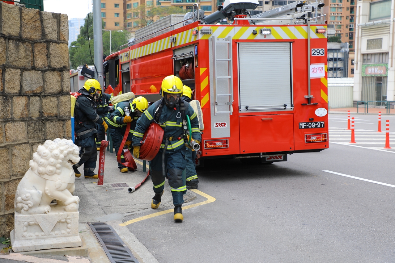 Depois do alarme, o CB enviou de imediato 9 veículos de emergência e 39 bombeiros para acorrerem ao local, com vista a combater o fogo e executar a acção de busca e salvamento conforme o plano estabelecido, bem como procedeu à enfermagem preliminar junto de 1 ferido e ao simulacro de transporte para o hospital.