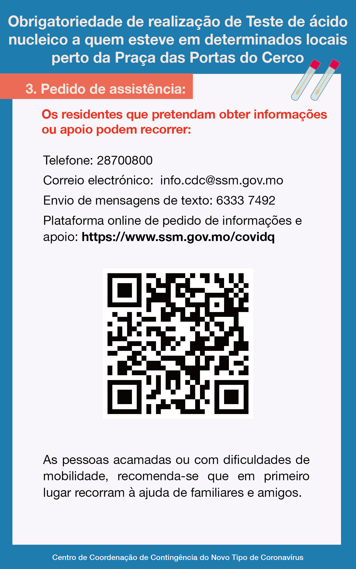 Obrigatoriedade de realização de Teste de ácido nucleico a quem esteve em determinados locais perto da Praça das Portas do Cerco