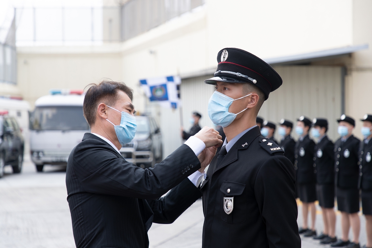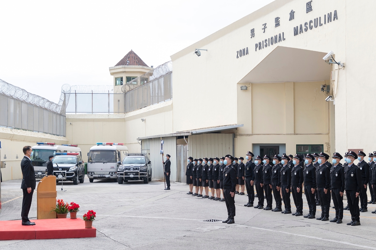O Director Cheng Fong Meng disse na cerimónia que o Estabelecimento Prisional é responsável pela execução das penas de privação de liberdade e medidas de prisão preventiva, bem como pelas atribuições correccionais de apoiar à reinserção social dos reclusos, desempenhando um papel indispensável na manutenção da equidade, justiça, ordem e estabilidade social, com uma pesada responsabilidade. O Director acrescentou que os guardas empossados, no momento de portarem os crachás de guarda prisional, assumem a missão correccional e um trabalho glorioso e significativo, esperando que estes nunca se esqueçam das suas aspirações originais, mantenham sempre a sua missão em mente, exerçam as suas funções com a devida diligência e cumpram as suas atribuições e deveres com sinceridade. Mais, disse que a actual situação de segurança interna e externa e de epidemia da Covid-19 são complexas e instáveis, o trabalho correccional enfrenta grandes desafios e se torna mais árduo, incentivando o pessoal da Direcção a manter as suas crenças, não ter medo das dificuldades, enfrentar desafios, seguir os três novos conceitos de “Policiamento Activo”, “Policiamento Comunitário” e “Policiamento de Proximidade”, fazer o seu melhor para normalizar o trabalho de antiepidémica e prevenção epidémica, desempenhar fielmente as suas funções, e proteger a segurança do pessoal e das instalações prisionais, dando os devidos contributos para a estabilidade a longo prazo da RAEM.