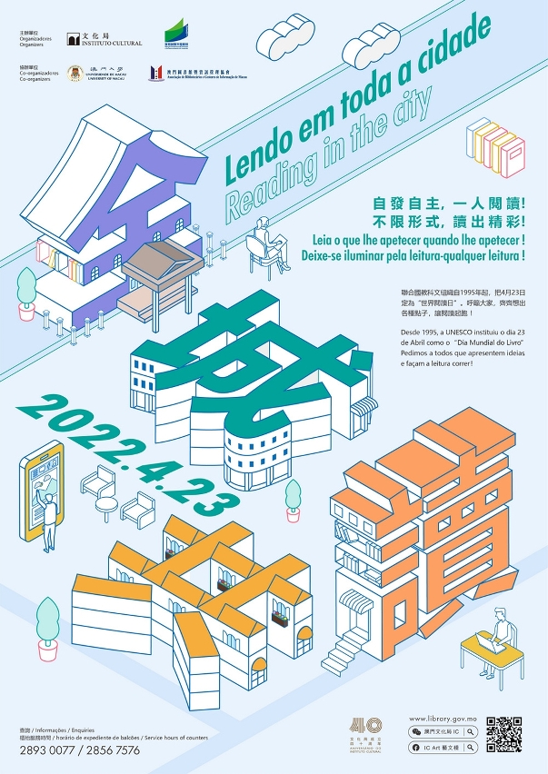 Todos os anos, a 23 de Abril, é comemorado o “Dia Mundial do Livro”. A fim de continuar a promover um ambiente de leitura e o desenvolvimento de hábitos de leitura, o Instituto Cultural e a Direcção dos Serviços de Educação e de Desenvolvimento da Juventude co-organizam, em colaboração com a Biblioteca da Universidade de Macau e a Associação de Bibliotecários e Gestores de Informação de Macau, a edição do evento “4‧23 Lendo em Toda a Cidade” de 2022. A edição deste ano vai ter lugar no dia 23 de Abril e a Organização está a promover “pontos de leitura”, convidando todos os interessados a inscrever-se e a participar neste evento.