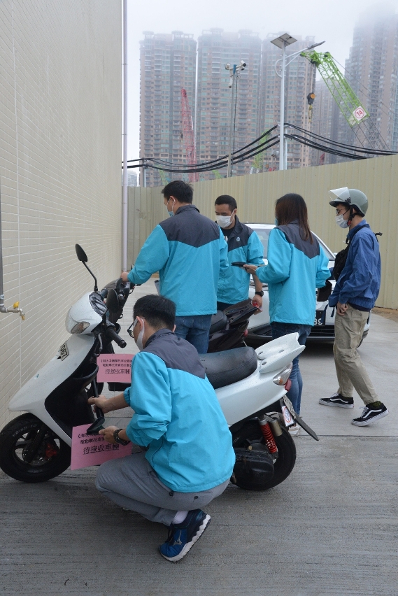 Segundo o procedimento de candidatura, a DSPA, depois de concluídas a apreciação e aprovação, irá notificar os indivíduos que cumpram os requisitos, para marcarem a data de entrega do motociclo, através da página electrónica (https://www.fpace.gov.mo/fpace_tc/introduction_p4.aspx) ou de ligação telefónica (2876 2626), tendo estes de entregar, pessoalmente ou por seu delegado, na data marcada, o motociclo obsoleto objecto de concessão de apoio financeiro para efeitos de abate, no local de recepção de motociclos, sob a tutela da DSPA (vide a imagem), situado no cruzamento entre a Avenida 1.º de Maio e a Avenida da Ponte da Amizade, ao lado da ETAR da Península de Macau. Após feita a entrega do veículo, o candidato deve também apresentar, junto da Direcção dos Serviços para os Assuntos de Tráfego, um pedido de matrícula do motociclo eléctrico novo, adquirido para substituir o motociclo obsoleto, dentro de 165 dias após a recepção da notificação da concessão do apoio financeiro. Por sua vez, a DSPA, no prazo de 60 dias após confirmada a conclusão do supracitado procedimento de abate e substituição do veículo, irá atribuir o apoio financeiro ao beneficiário.