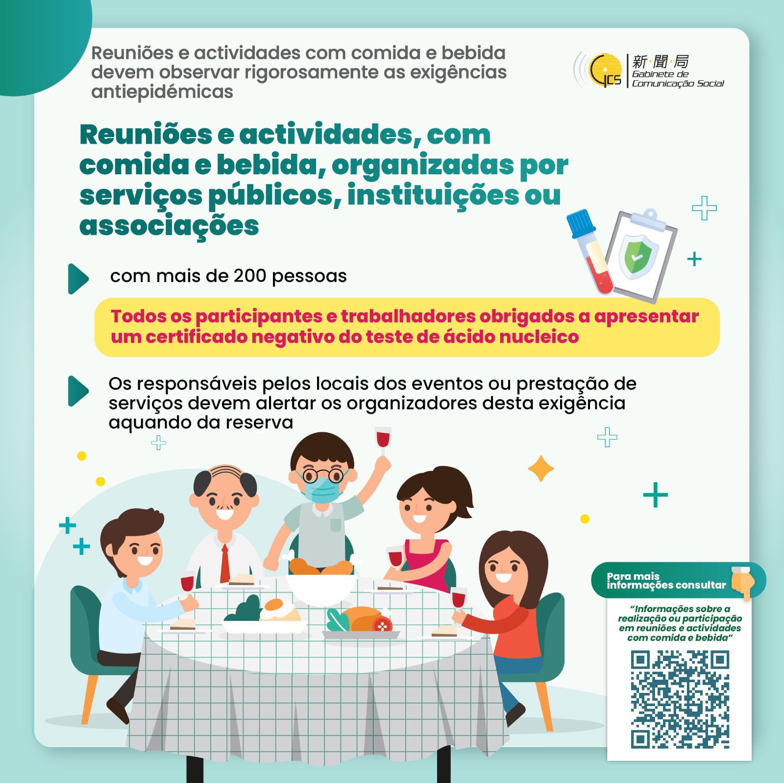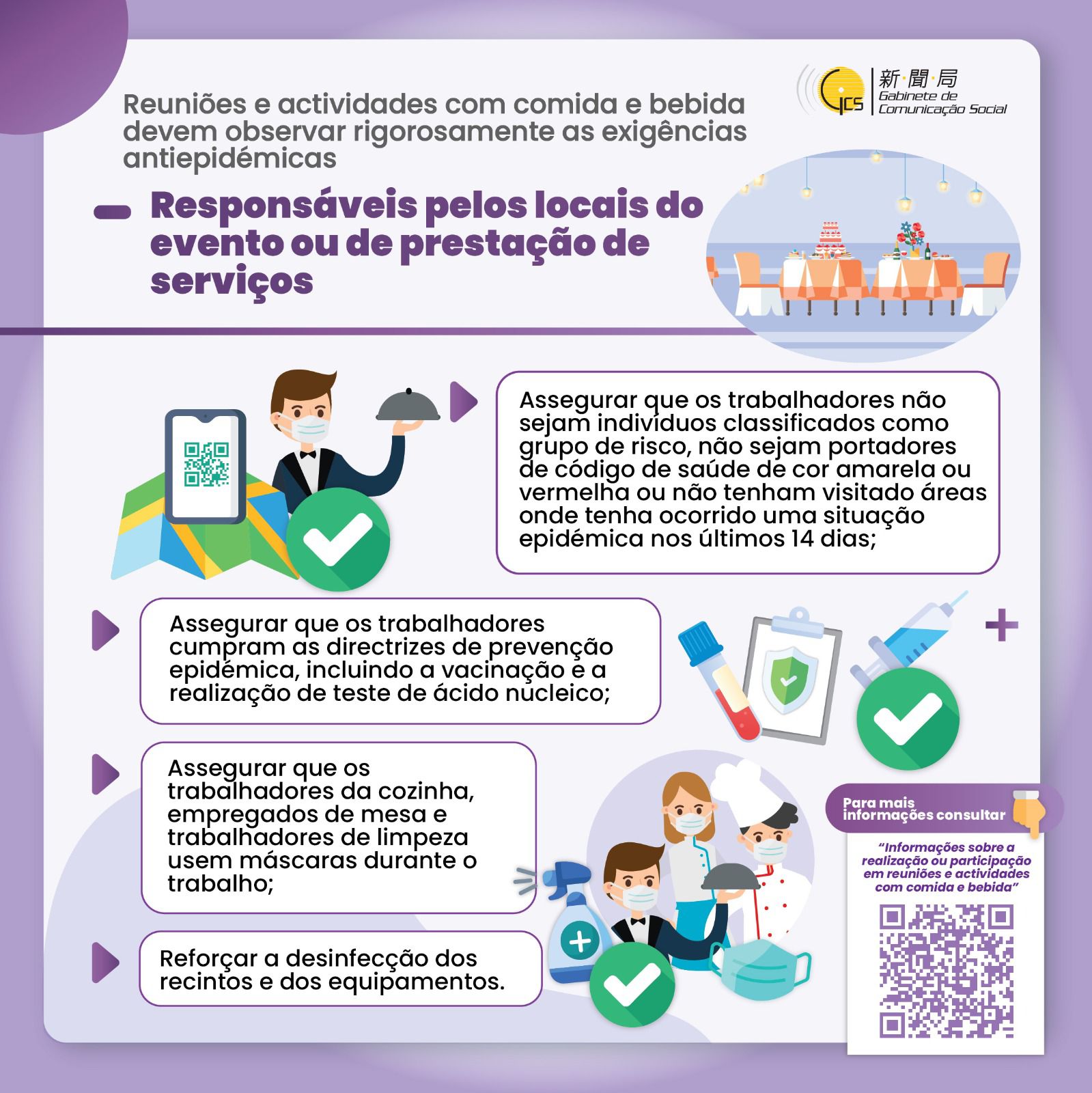 (Infografia) Reuniões e actividades com comida e bebida devem observar rigorosamente as exigências antiepidémicas