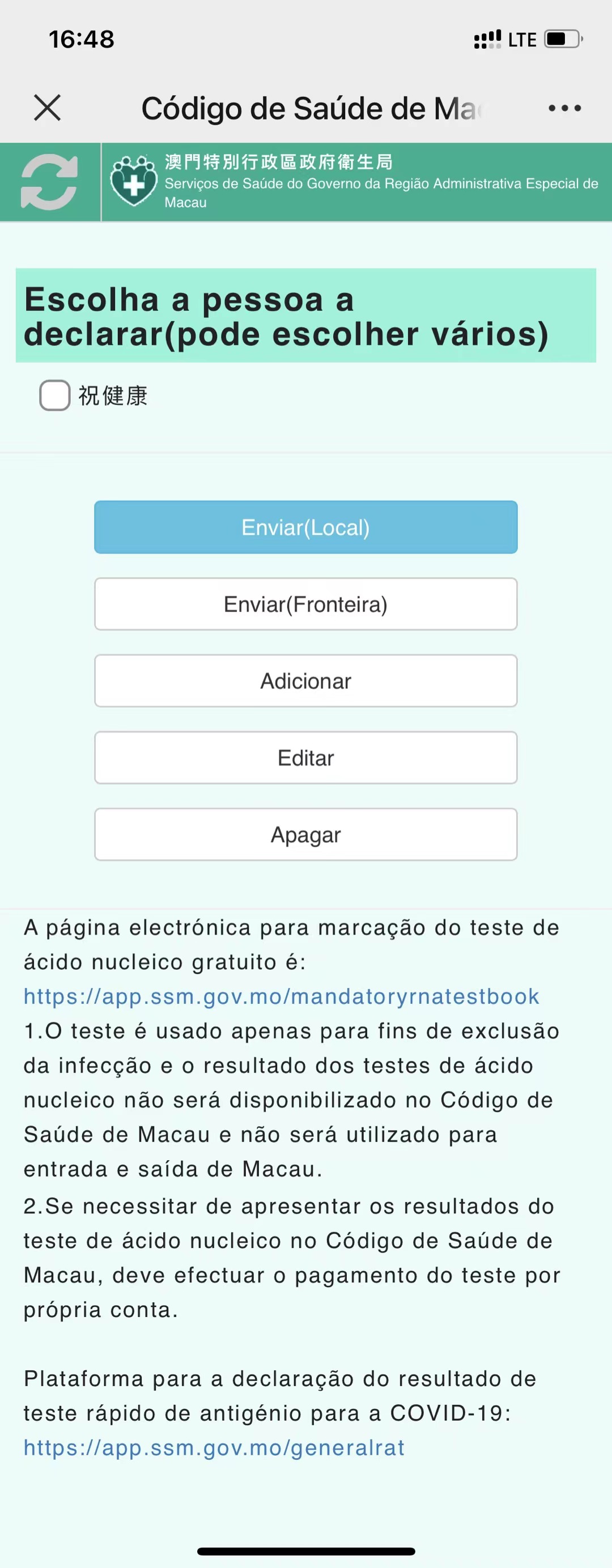 O Centro de Coordenação de Contingência do Novo Tipo de Coronavírus lembra ao público para descarregar ou actualizar a aplicação móvel “Código de Saúde de Macau" com a versão mais recente (1.0.7.), o mais rápido possível.