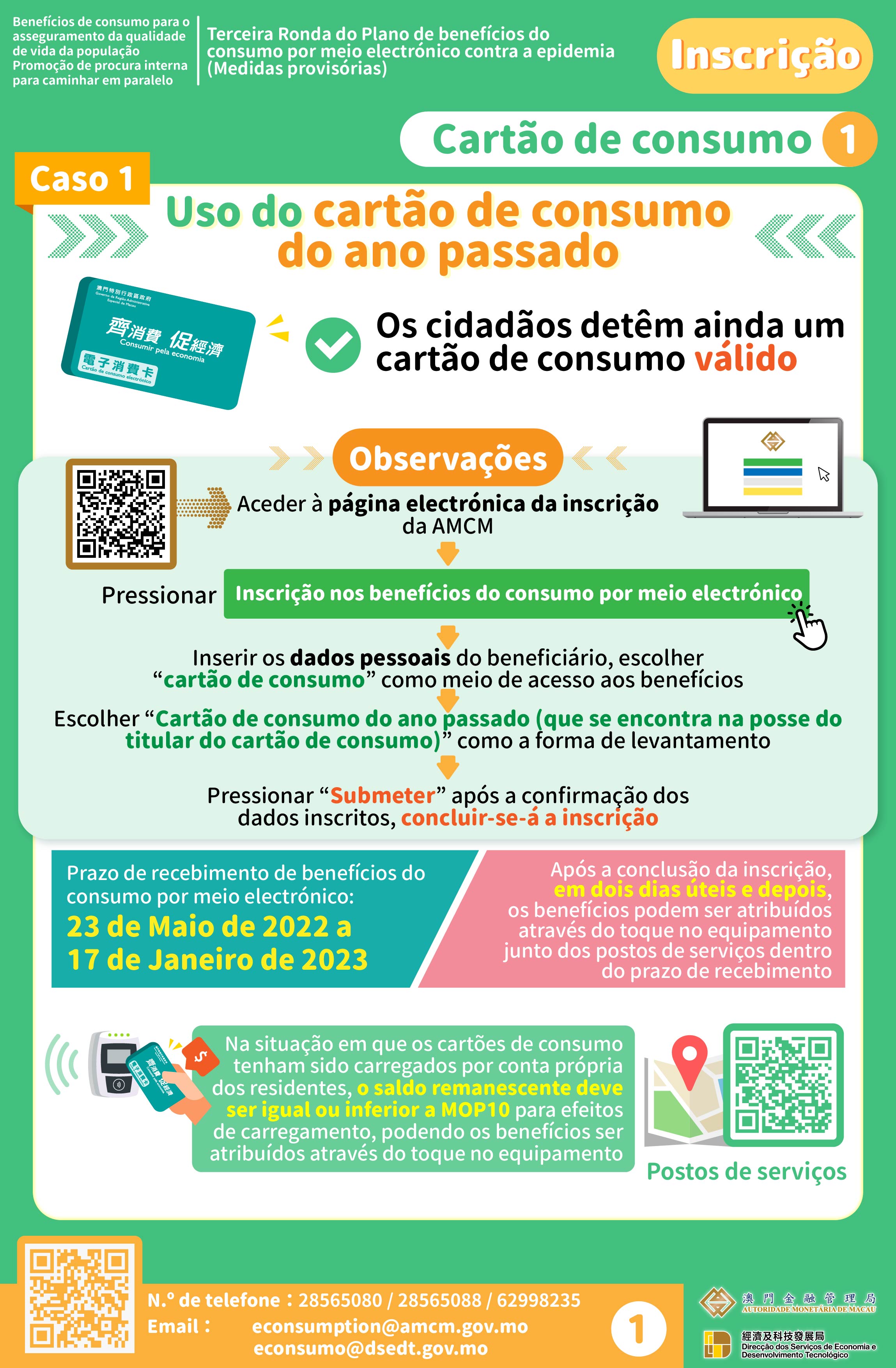 Caso o residente titular do cartão de consumo válido pretenda este ano continuar a utilizar ou passar a utilizar o cartão de consumo, pode, no momento da inscrição, escolher directamente o “cartão de consumo do ano passado”, depois da introdução dos seus dados pessoais.