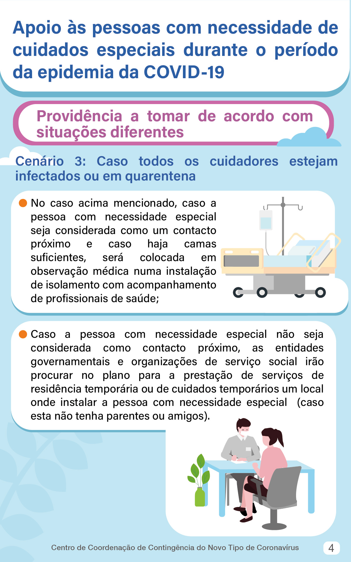 Apoio às pessoas com necessidade de cuidados especiais durante o período da epidemia da COVID-19 (infografia)