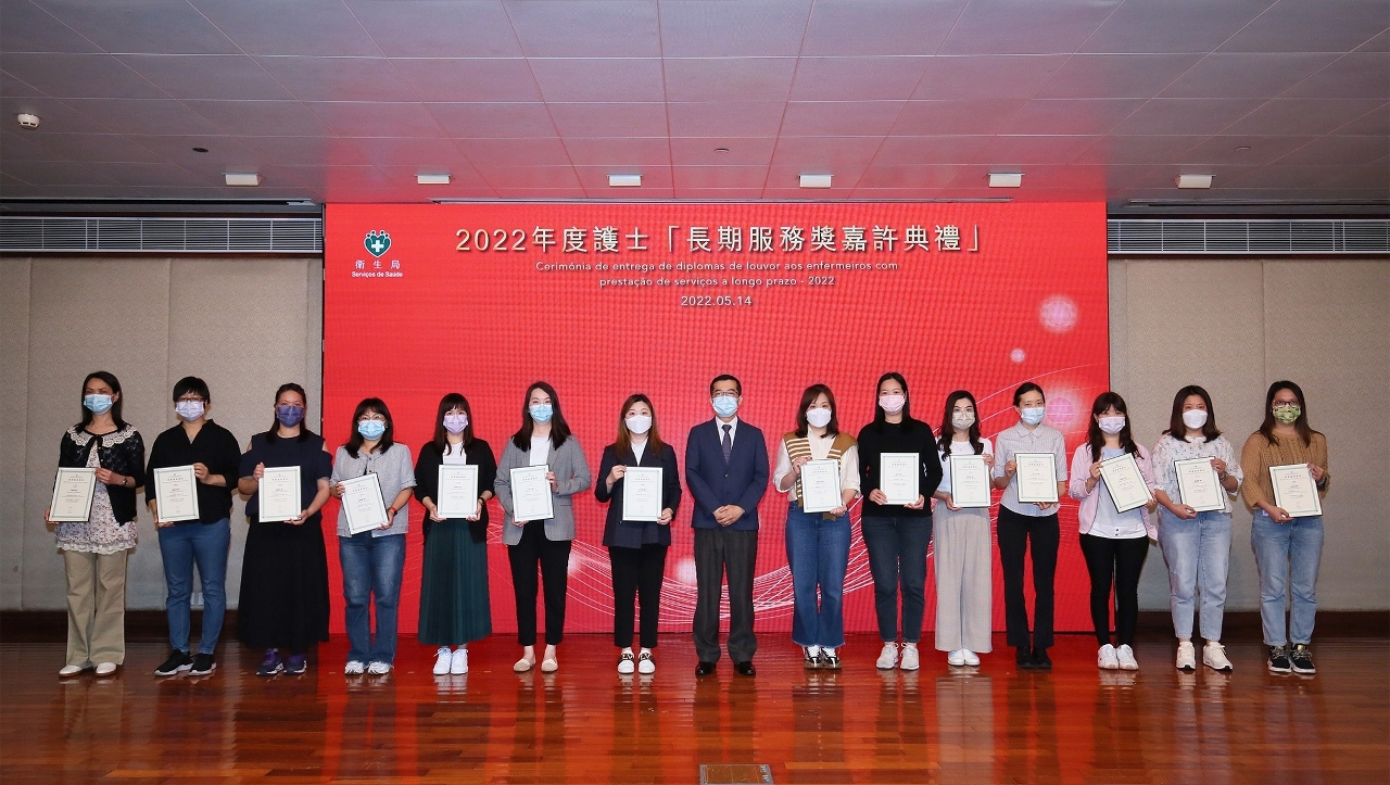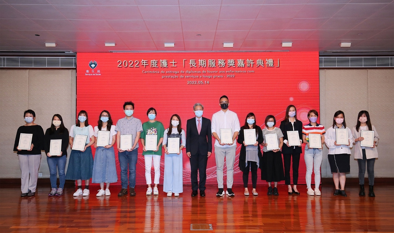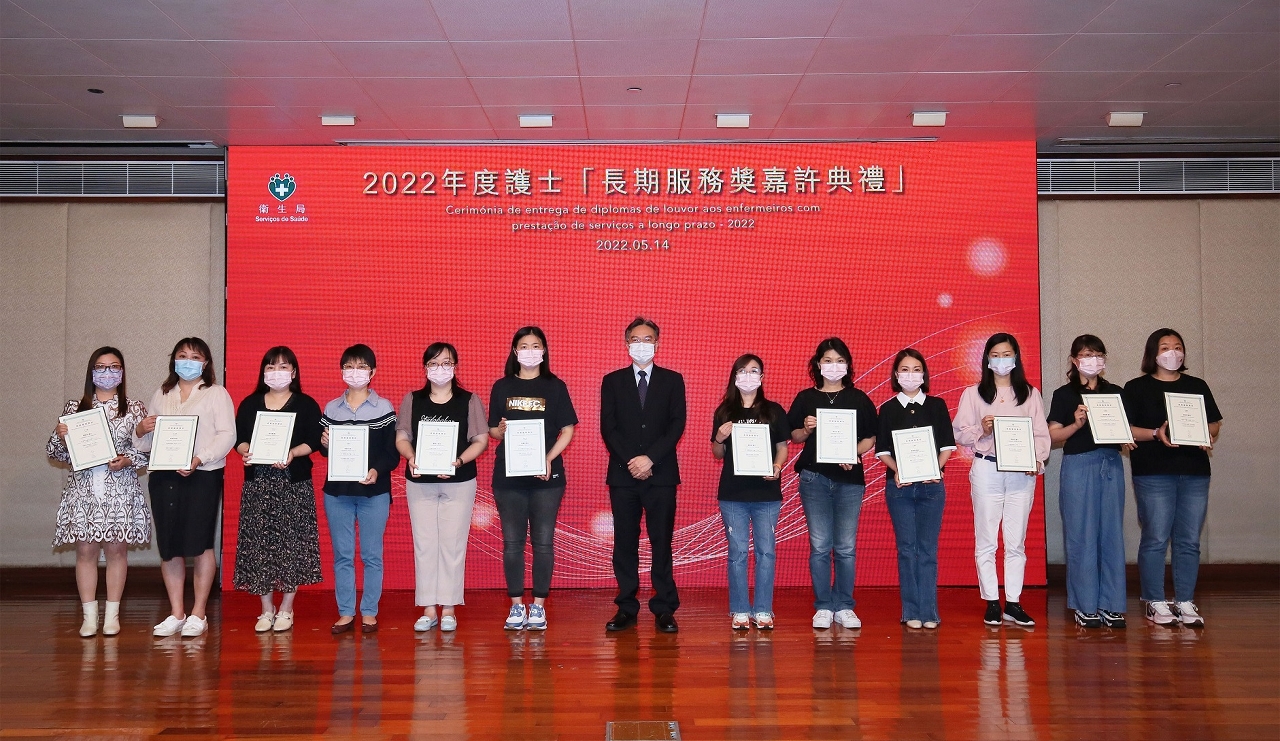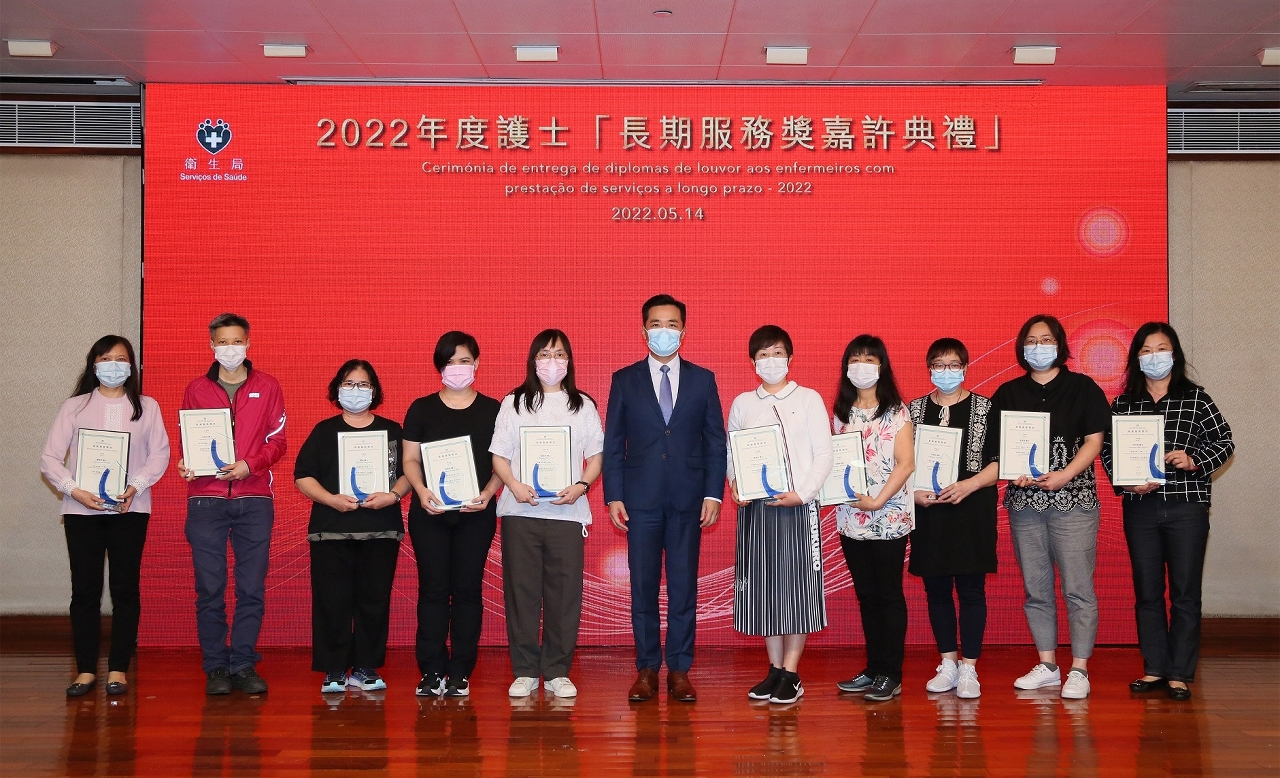 Os Serviços de Saúde realizaram sábado, 14 de Maio, por ocasião do Dia Internacional do Enfermeiro, a Cerimónia de Entrega de Diplomas de Louvor aos Enfermeiros com Prestação de Serviços a Longo Prazo a 47 enfermeiros que serviram Macau por mais de 20 anos e a 26 enfermeiros que serviram Macau por mais de 30 anos. Esta é uma forma do Governo da RAEM expressar reconhecimento e prestar homenagem.