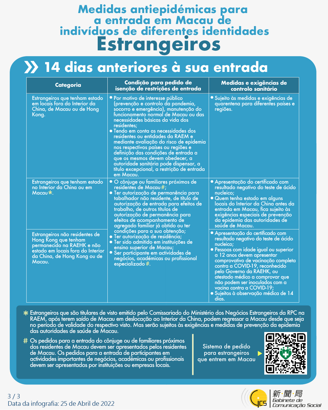 • Medidas antiepidémicas para a entrada em Macau de indivíduos de diferentes identidades