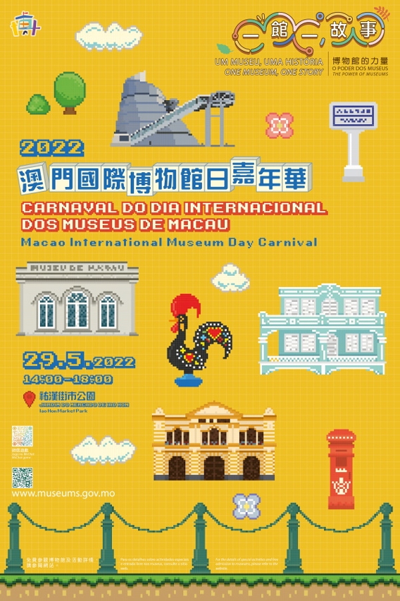 Em homenagem ao Dia Internacional dos Museus, celebrado no dia 18 de Maio, 20 museus de Macau irão organizar conjuntamente o grande evento anual do sector museológico, o “Carnaval do Dia Internacional dos Museus de Macau 2022”. A cerimónia de abertura terá lugar no dia 29 de Maio (Domingo), pelas 14:00 horas, no Jardim do Mercado do Iao Hon, onde haverá jogos de cabine, workshops, visitas guiadas e um jogo no WeChat com sorteio de prémios. Para mais informações sobre as actividades e o modo de participação, é favor visitar a página “Museus de Macau” (www.museums.gov.mo), sendo a participação de todos muito bem-vinda.