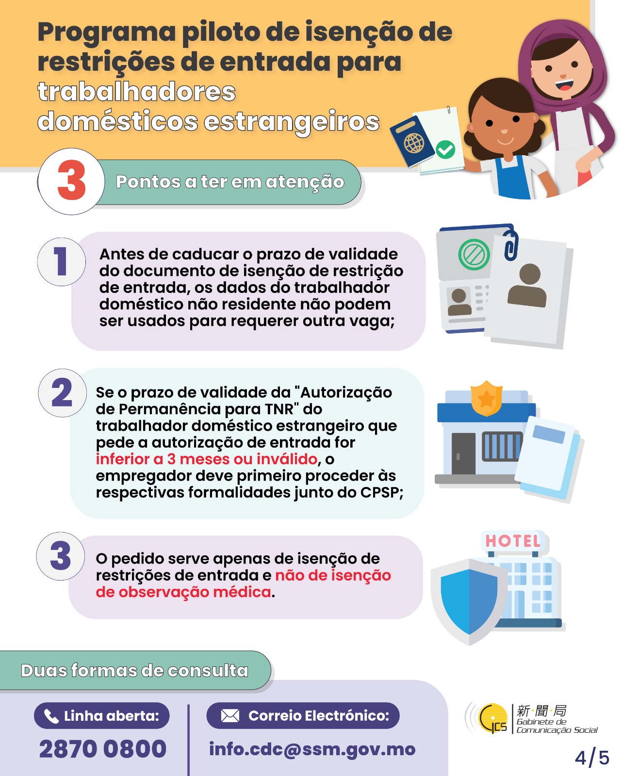 • Programa piloto de isenção de restrições de entrada para trabalhadores domésticos estrangeiros --- 5ª fase
