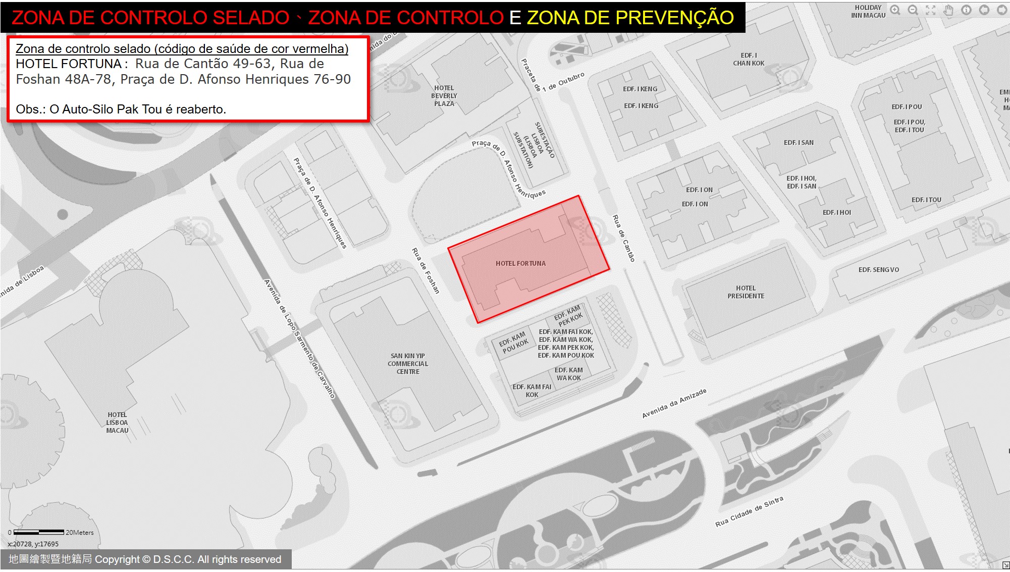 - HOTEL FORTUNA(Rua de Cantão 49-63, Rua de Foshan 48A-78,PPraça de D. Afonso Henriques 76-90 )(Obs.:O Auto-Silo Pak Tou e reaberto.).