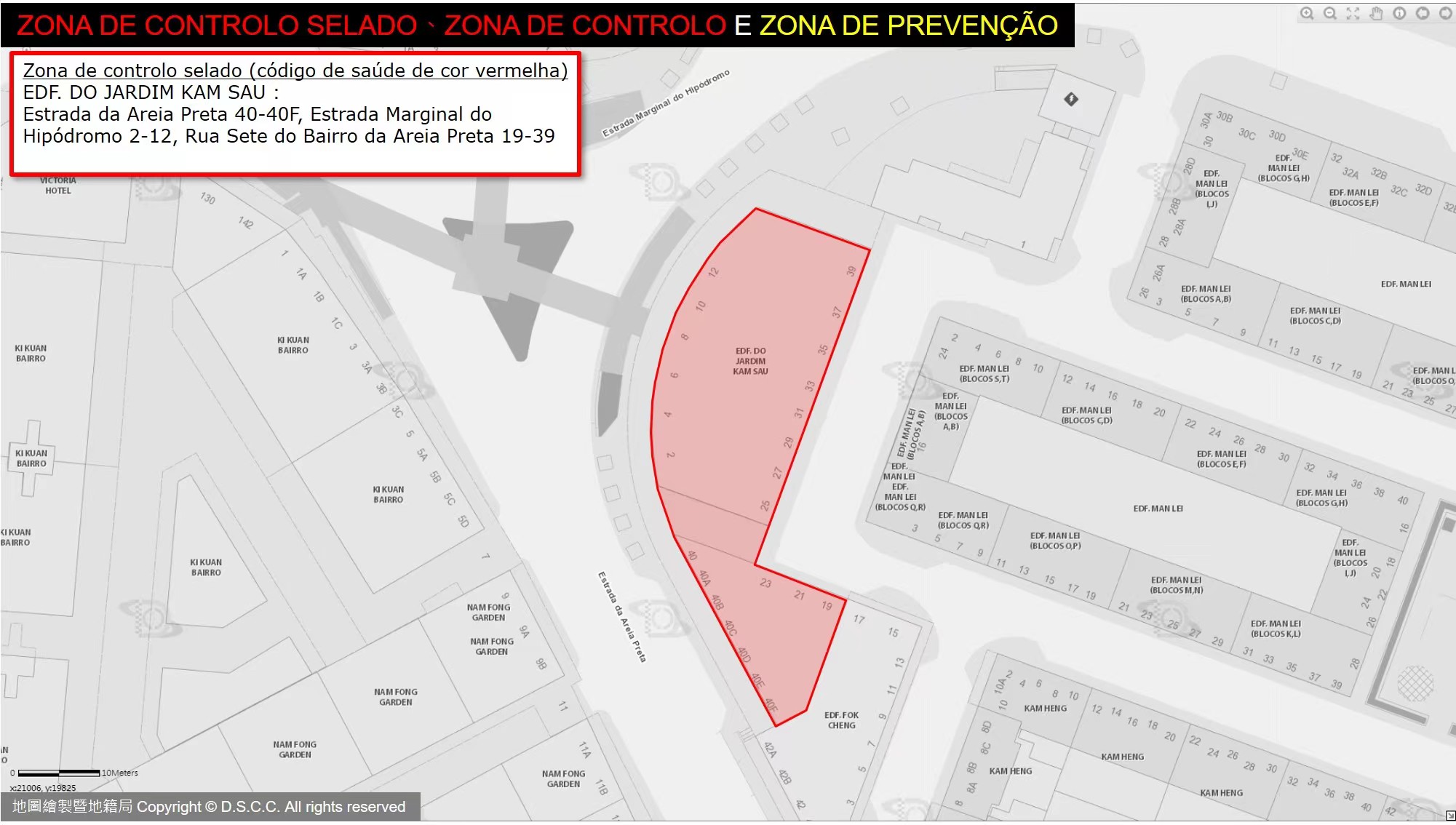 EDF. DO JARDIM KAM SAU : Estrada da Areia Preta 40-40F, Estrada Marginal do Hipódromo 2-12, Rua Sete do Bairro da Areia Preta 19-39 |