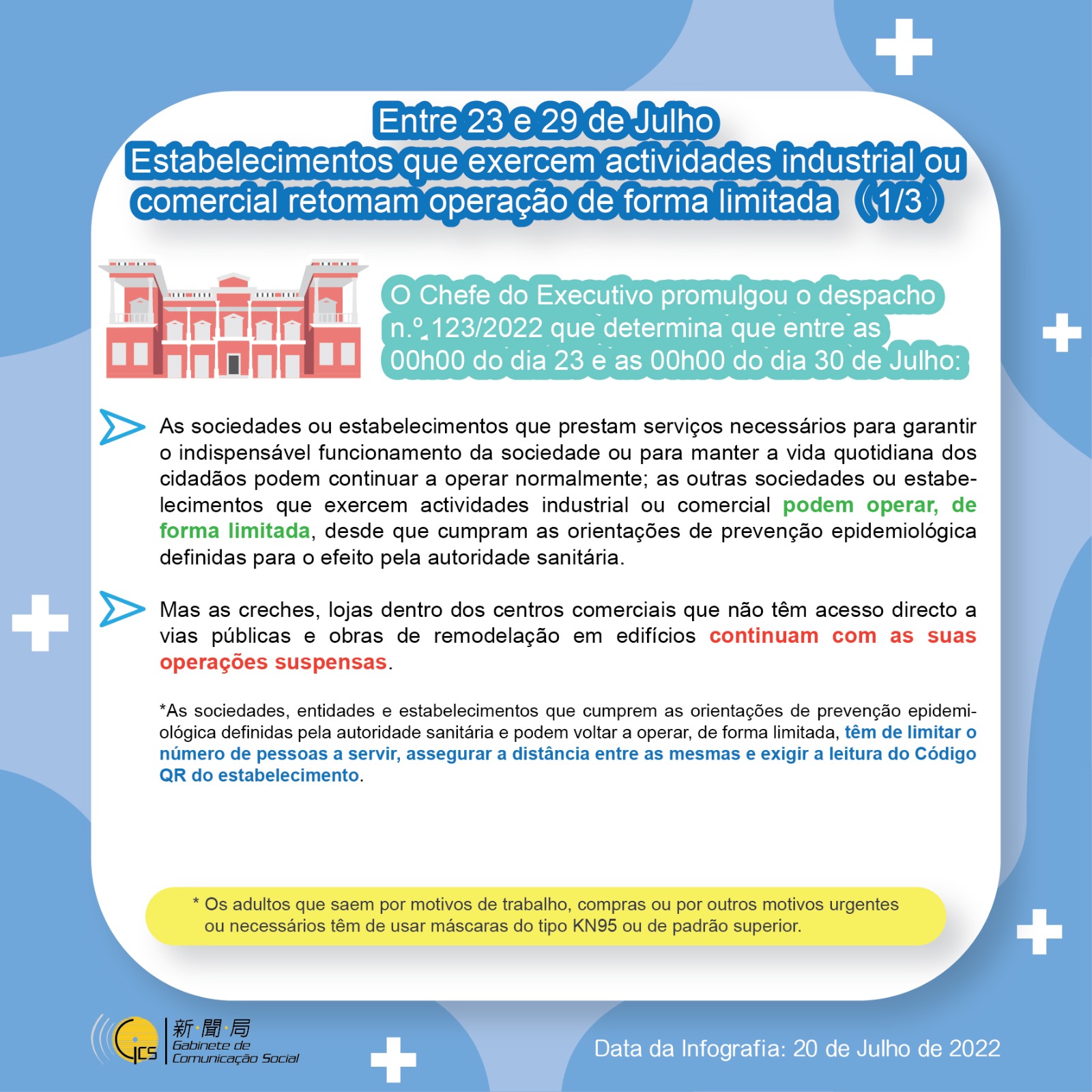 【Infografia】Estabelecimentos que exercem actividades industrial ou comercial retomam operação de forma limitada entre 23 e 29 de Julho