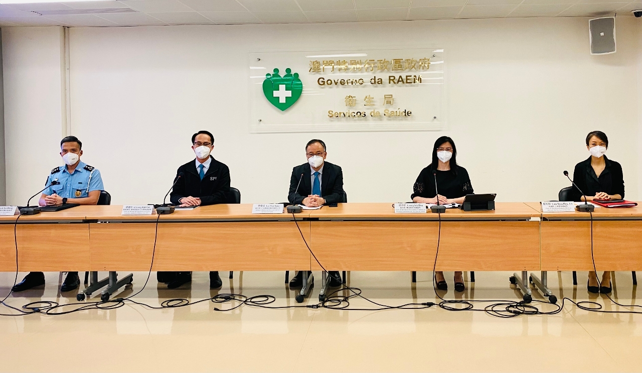 Estiveram presentes na conferência de imprensa: O Médico-Adjunto do CHCSJ, Dr. Lei Wai Seng, a Chefe da Divisão de Prevenção e Controlo de Doenças Transmissíveis do CDC dos Serviços de Saúde, Dr.ª Leong Iek Hou, o Chefe da Divisão de Ligação de Assuntos Policiais e Relações-Públicas dos Serviços de Polícia Unitários, Dr. Cheong Kin Ian, o Chefe da Divisão de Operações e Comunicações do Corpo de Polícia de Segurança Pública, Dr. Ma Chio Hong e a Chefe da Divisão de Relações Públicas da Direcção dos Serviços de Turismo, Dr.ª Lam Tong Hou.