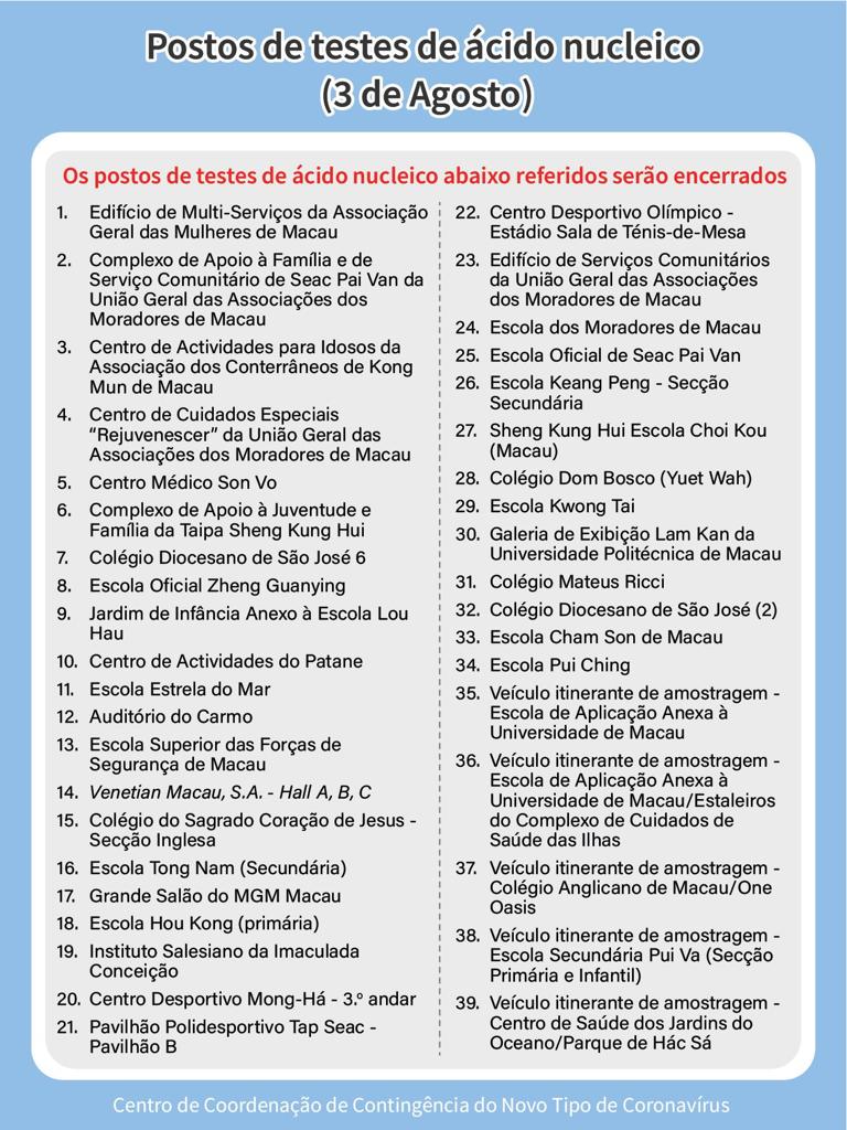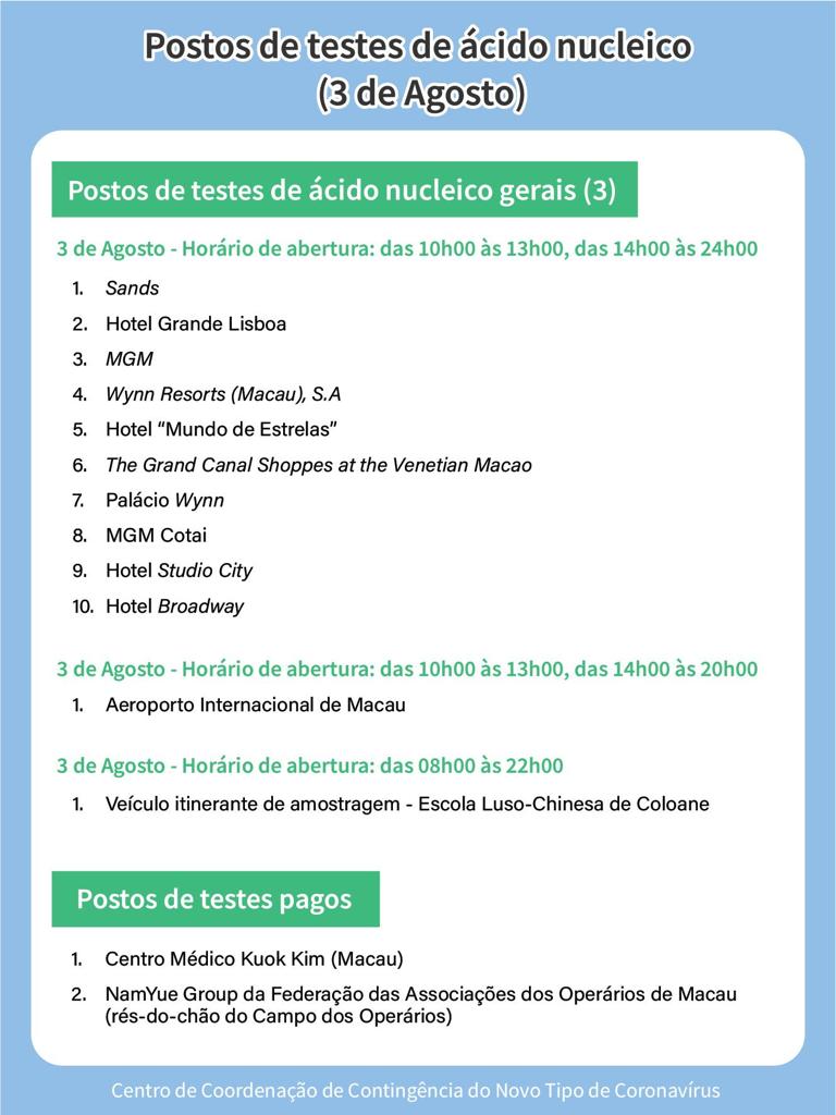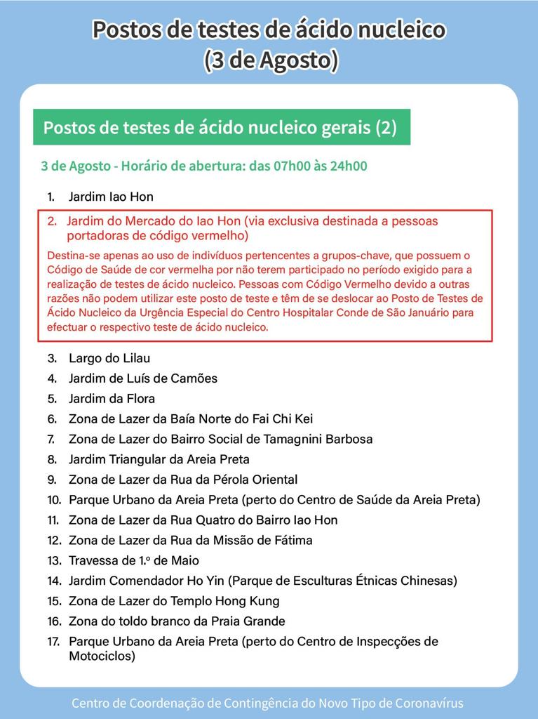 | Postos de Testes Pagos (Marcação obrigatória, resultado exibido no código de saúde e fornecido em forma de papel) |