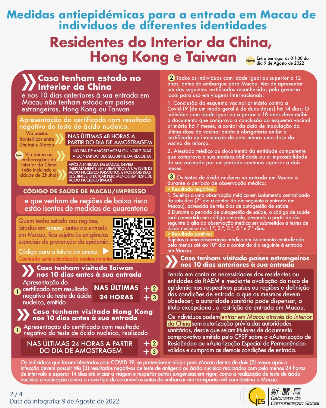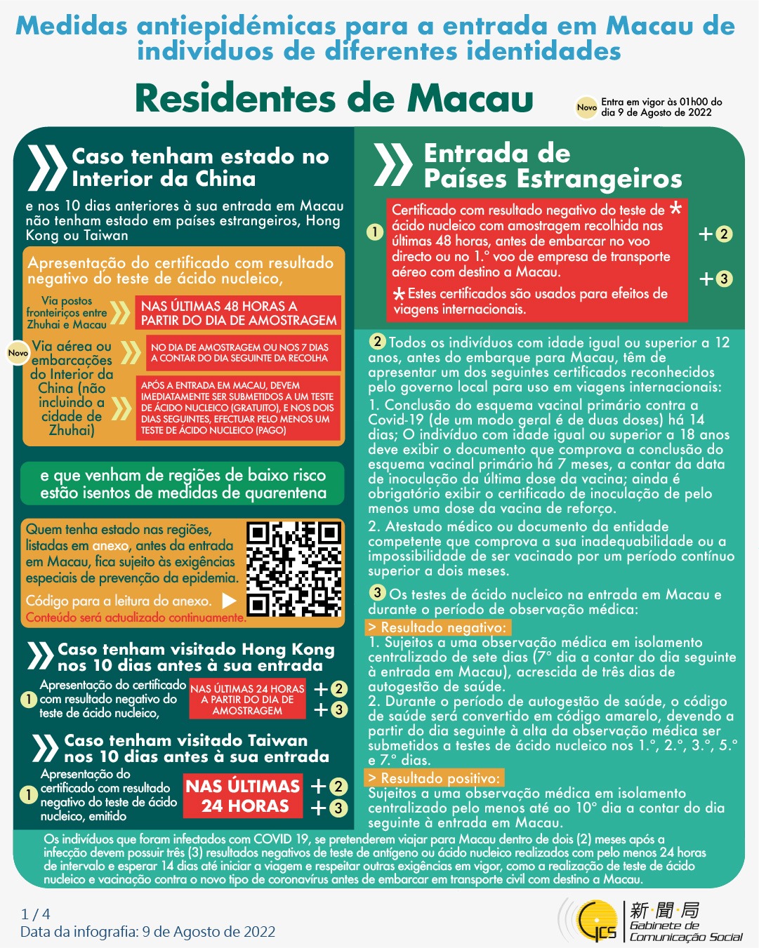 (Infografia) Medidas antiepidémicas para a entrada em Macau de indivíduos de diferentes identidades, actualizadas no dia 9 de Agosto de 2022