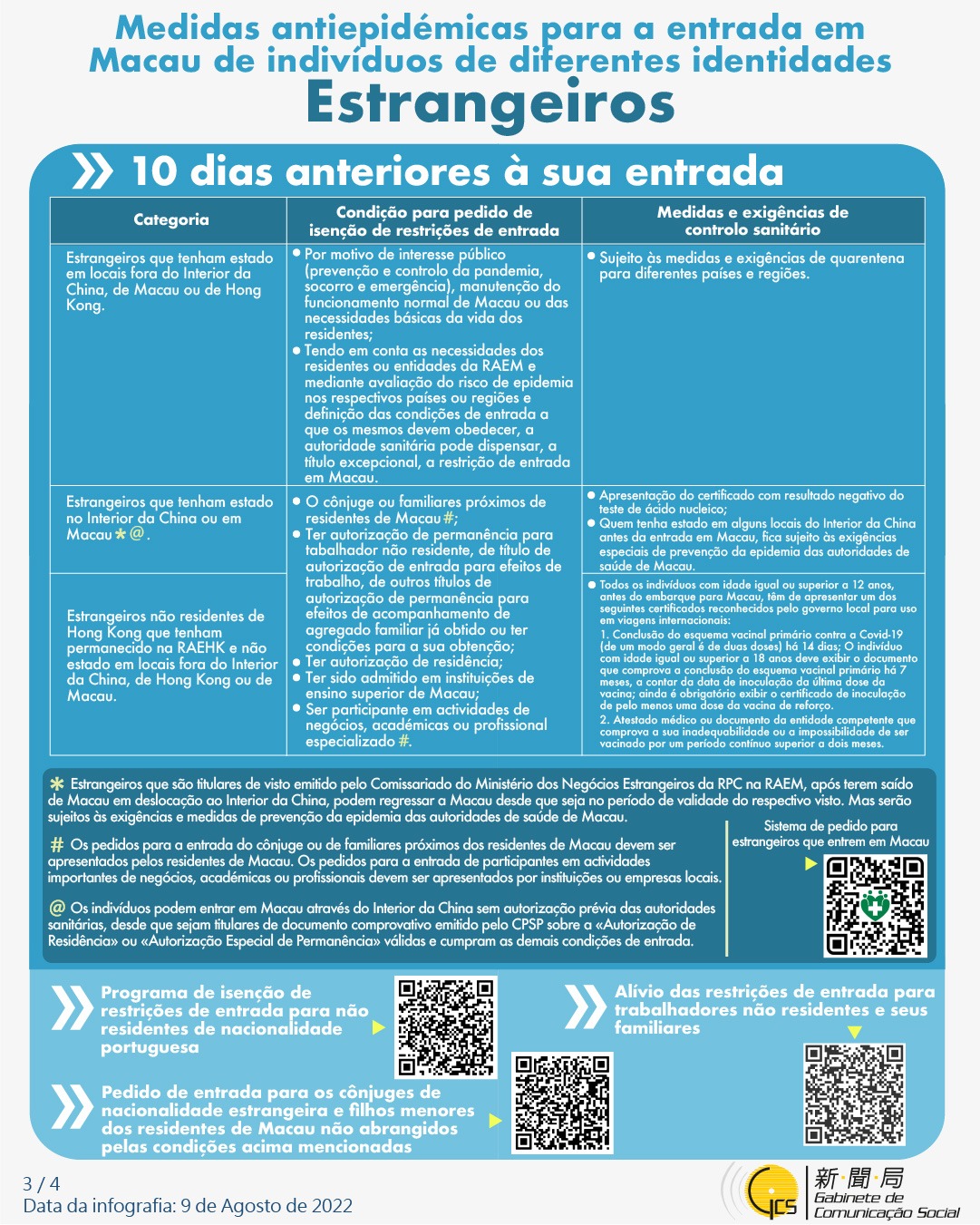 (Infografia) Medidas antiepidémicas para a entrada em Macau de indivíduos de diferentes identidades, actualizadas no dia 16 de Agosto de 2022