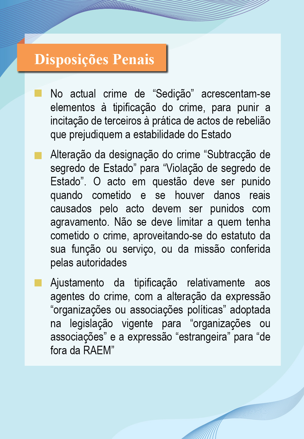 【Infografias】Consulta pública relativa à revisão da «Lei relativa à defesa da segurança do Estado» - Disposições Penais