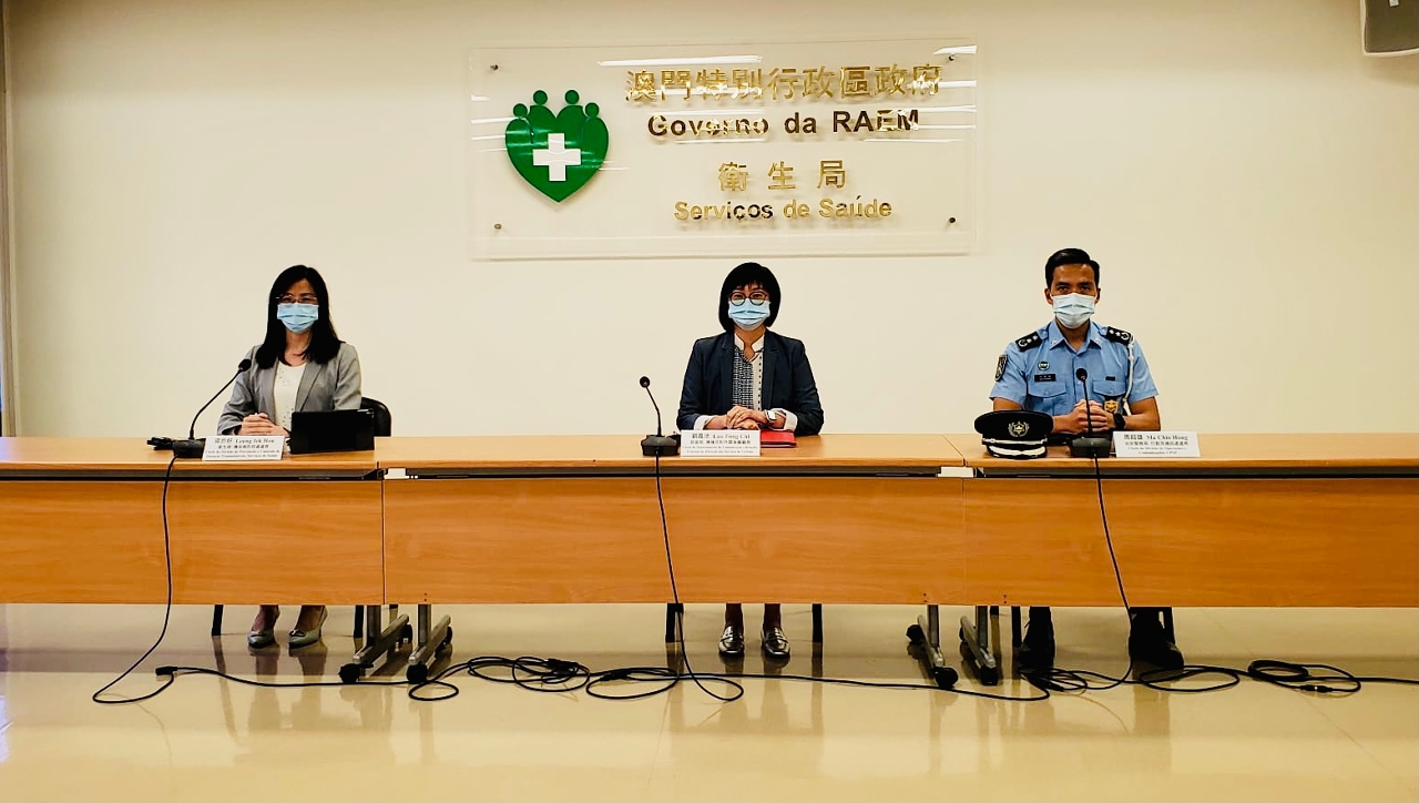 Estiveram presentes na conferência de imprensa: a Chefe Departamento de Comunicação e Relações Externas, Dr.ª Lau Fong Chi, a Chefe da Divisão de Prevenção e Controlo de Doenças Transmissíveis do CDC dos Serviços de Saúde, Dr.ª Leong Iek Hou e o Chefe da Divisão de Operações e Comunicações do Corpo de Polícia de Segurança Pública, Dr. Ma Chio Hong.