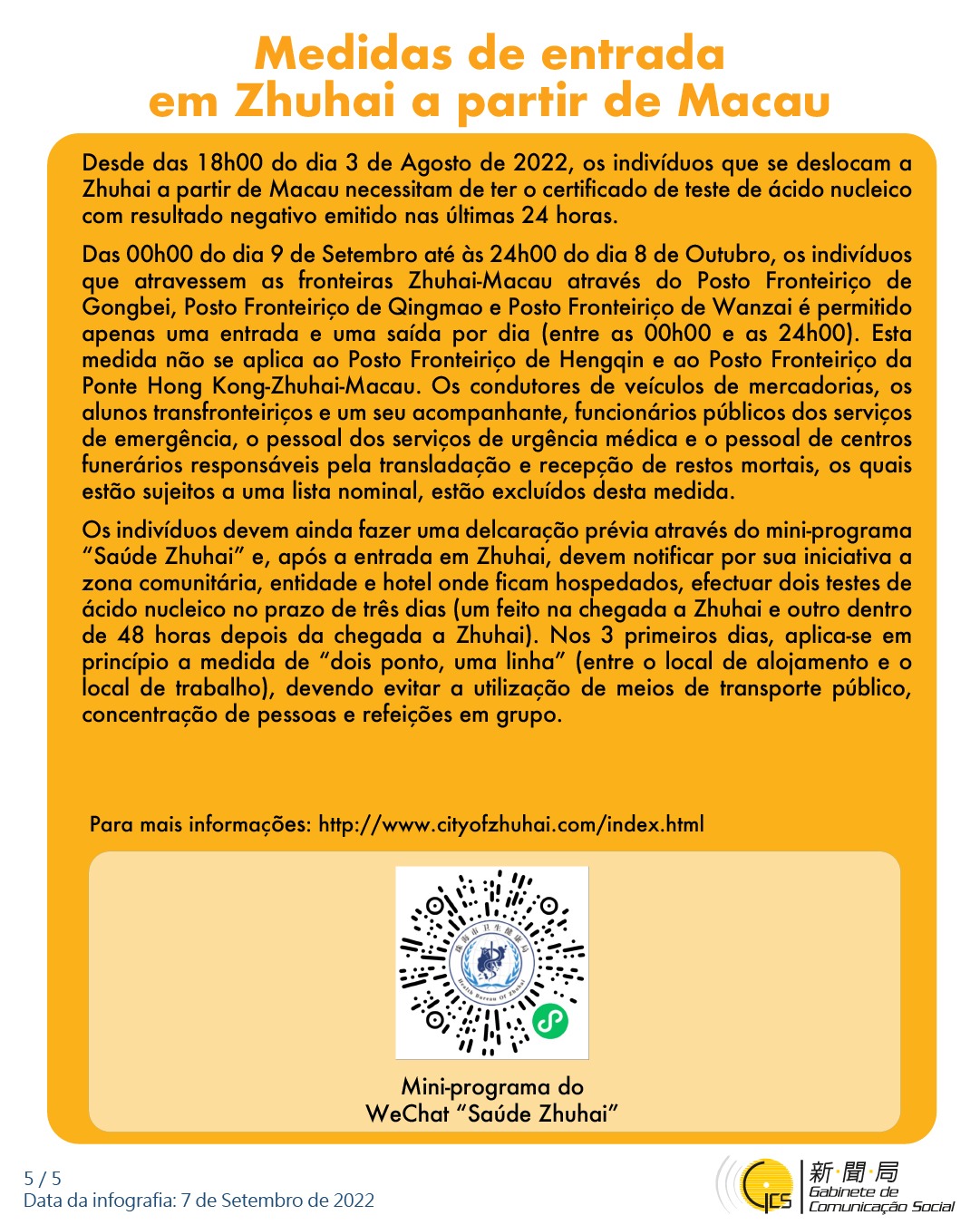 • Medidas de entrada em Zhuhai a partir de Macau