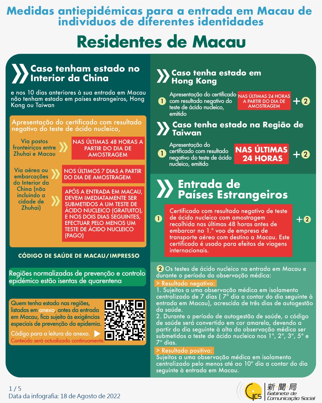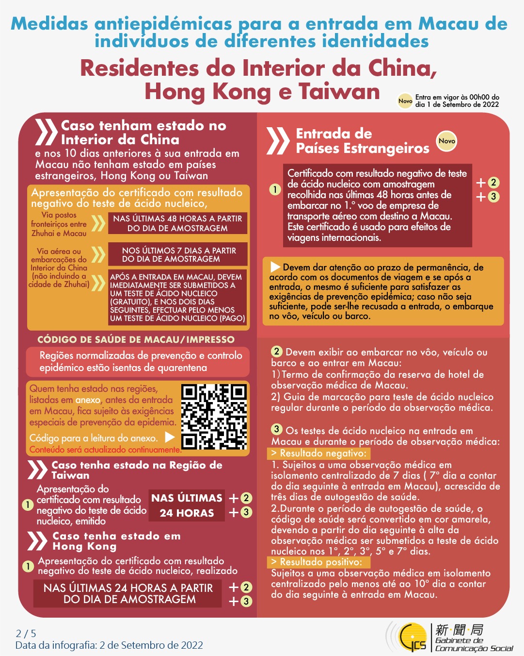 (Infografia) Medidas antiepidémicas para a entrada em Macau de indivíduos de diferentes identidades, actualizadas no dia 7 de Setembro de 2022
