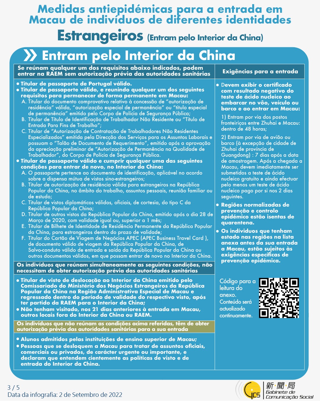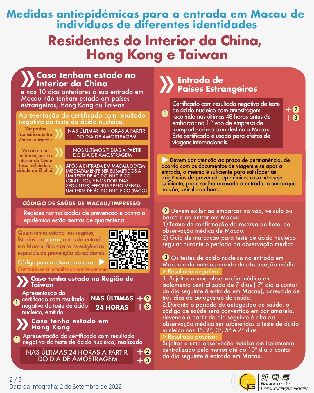 (Infografia) Medidas antiepidémicas para a entrada em Macau de indivíduos de diferentes identidades, actualizadas no dia 18 de Setembro de 2022