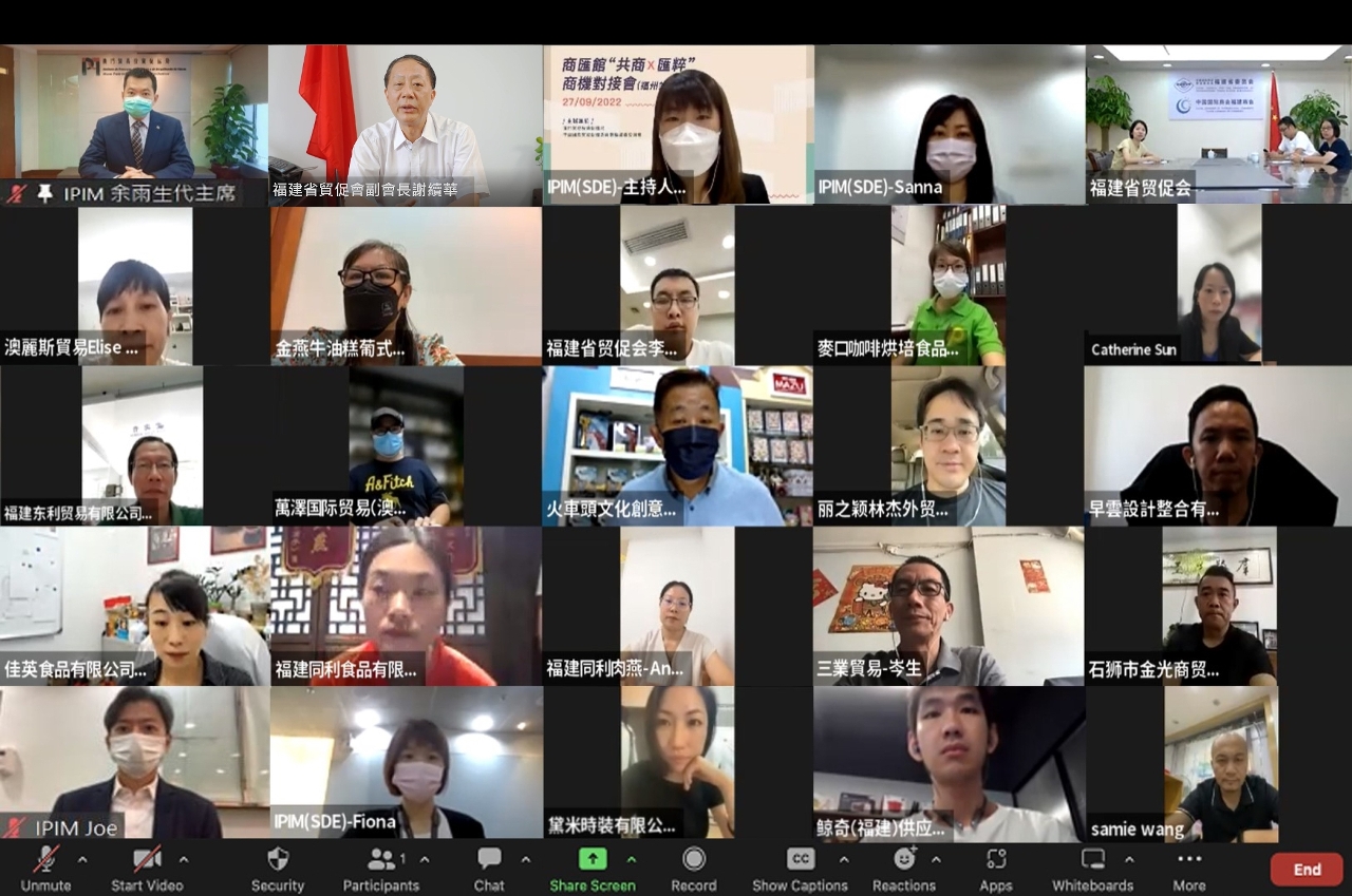 Após as estações promocionais em Guangzhou e Shenyang, a Sessão de Bolsas de Contactos “Negócios Comuns x Congregação” - Estação Fuzhou do Macao Ideas realizou-se hoje (dia 27 de Setembro). A actividade foi organizada conjuntamente pelo Instituto de Promoção do Comércio e do Investimento de Macau (IPIM) e pela Delegação Provincial de Fujian do Conselho Chinês para a Promoção do Comércio Internacional (CCPIT, na sigla inglesa), tendo-se coordenado 34 empresas de Macau e de Fujian para realizar mais de 40 sessões de negociação online, que abrangeram domínios como comércio, processamento de alimentos, comércio a retalho e grossista, design de criatividade cultural, entre outros.