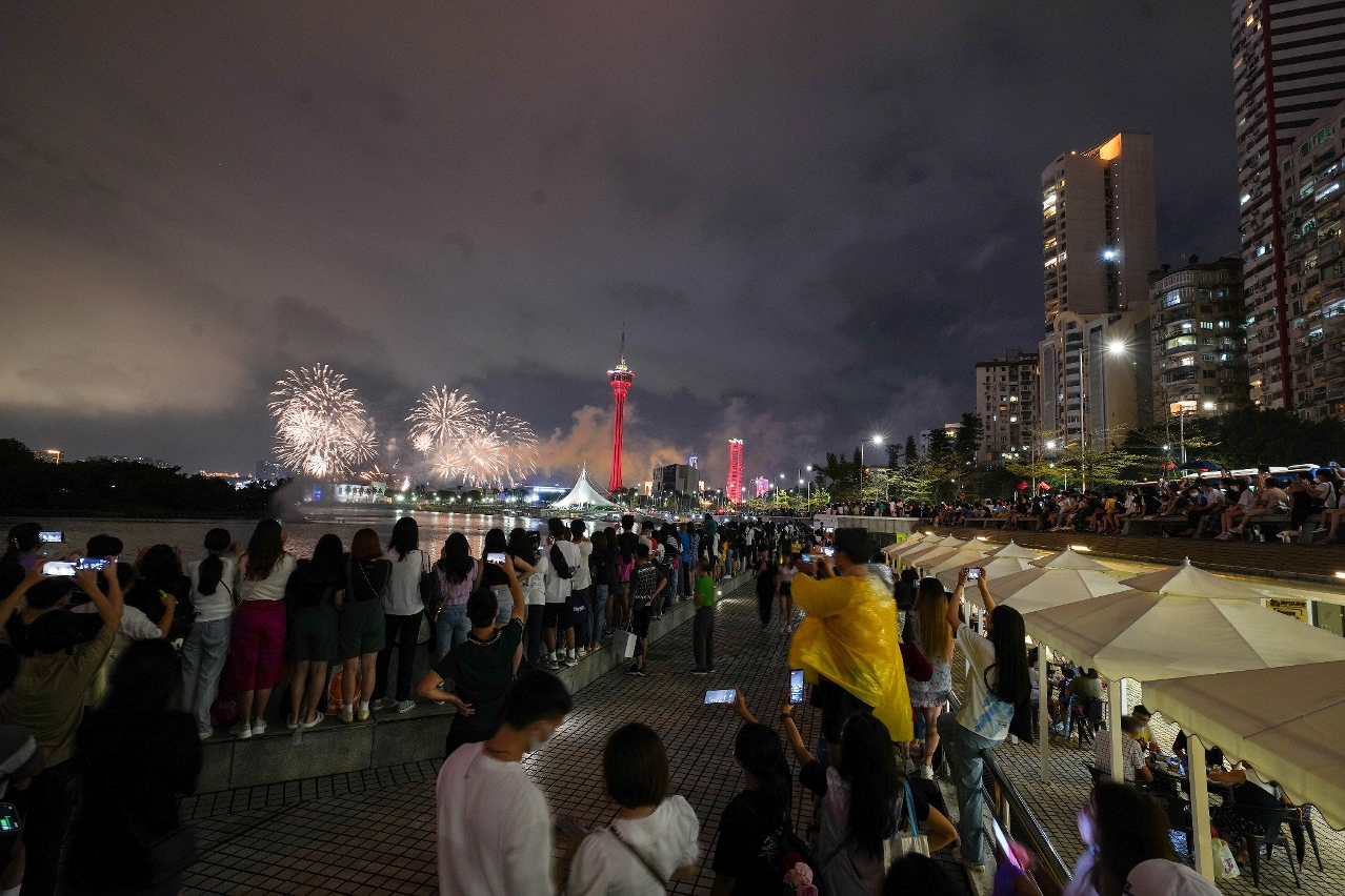 O Espectáculo de Fogo-de-artifício em Comemoração do Dia Nacional de 2022 organizado pela Direcção dos Serviços de Turismo (DST) decorreu esta noite (dia 1) na baía em frente à Torre de Macau para assinalar o 73.° Aniversário da Implantação da República Popular da China (RPC). A exibição atraíu muitos residentes e visitantes ao local, e obteve mais de 80 mil visionamentos no Interior da China através da transmissão em directo do espectáculo realizada por duas populares plataformas sociais, que deu a sentir o ambiente festivo dos eventos de Macau.