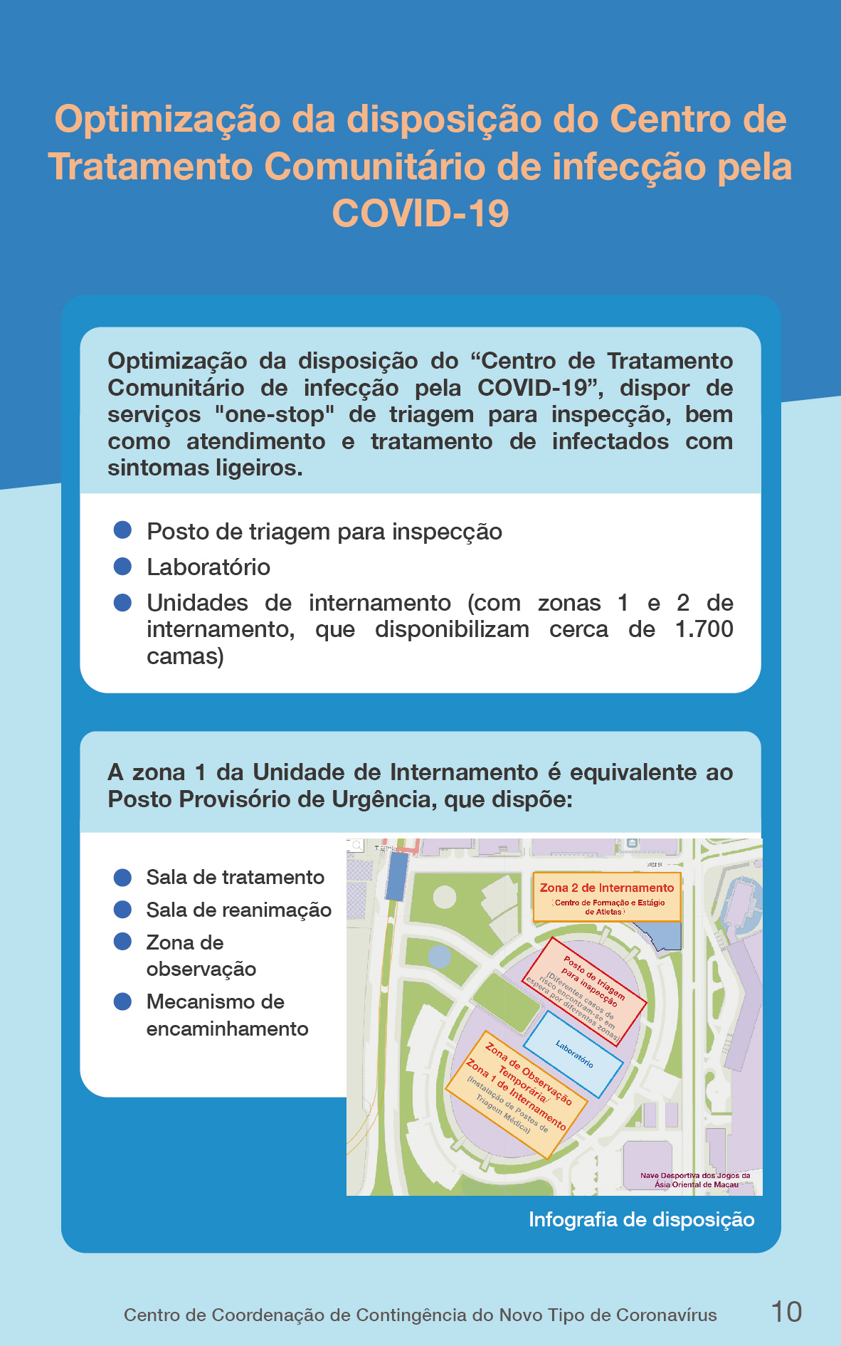 Segundo o Centro de Coordenação, os planos de contingência, que servem de documento-quadro, são uma orientação importante para a luta contra a epidemia em Macau. O Governo da RAEM, com base nos planos de contingência definidos, através dos 15 grupos especializados, continuará a aperfeiçoar e a pormenorizar todos os trabalhos preparativos para a luta contra a epidemia, a ajustar e optimizar, de forma contínua, as diversas medidas de prevenção de acordo com as características das variantes das estirpes e a evolução real da epidemia.