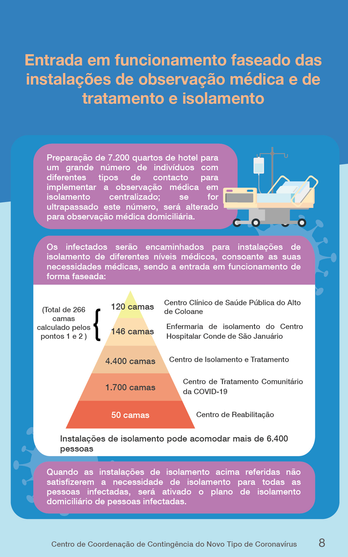 Ao mesmo tempo, após uma análise abrangente das opiniões e sugestões de optimização relevantes, e com referência ao “Plano de Prevenção e Controlo da Pneumonia causada pelo novo tipo de Coronavírus (9.ª versão)” divulgado pelo Mecanismo conjunto de prevenção e controlo do Conselho de Estado, revendo plenamente o “Plano de Resposta de Emergência para a situação epidémica da COVID-19 em grande escala (1ª. versão), (adiante designado por Plano da 1.a versão), o Governo da RAEM concluiu a revisão e elaboração do “Plano de Contingência em resposta à Epidemia de Pneumonia causada pelo novo tipo de coronavírus (2.ª versão)” (doravante designado por “Plano de contingência, 2.ª versão”).
