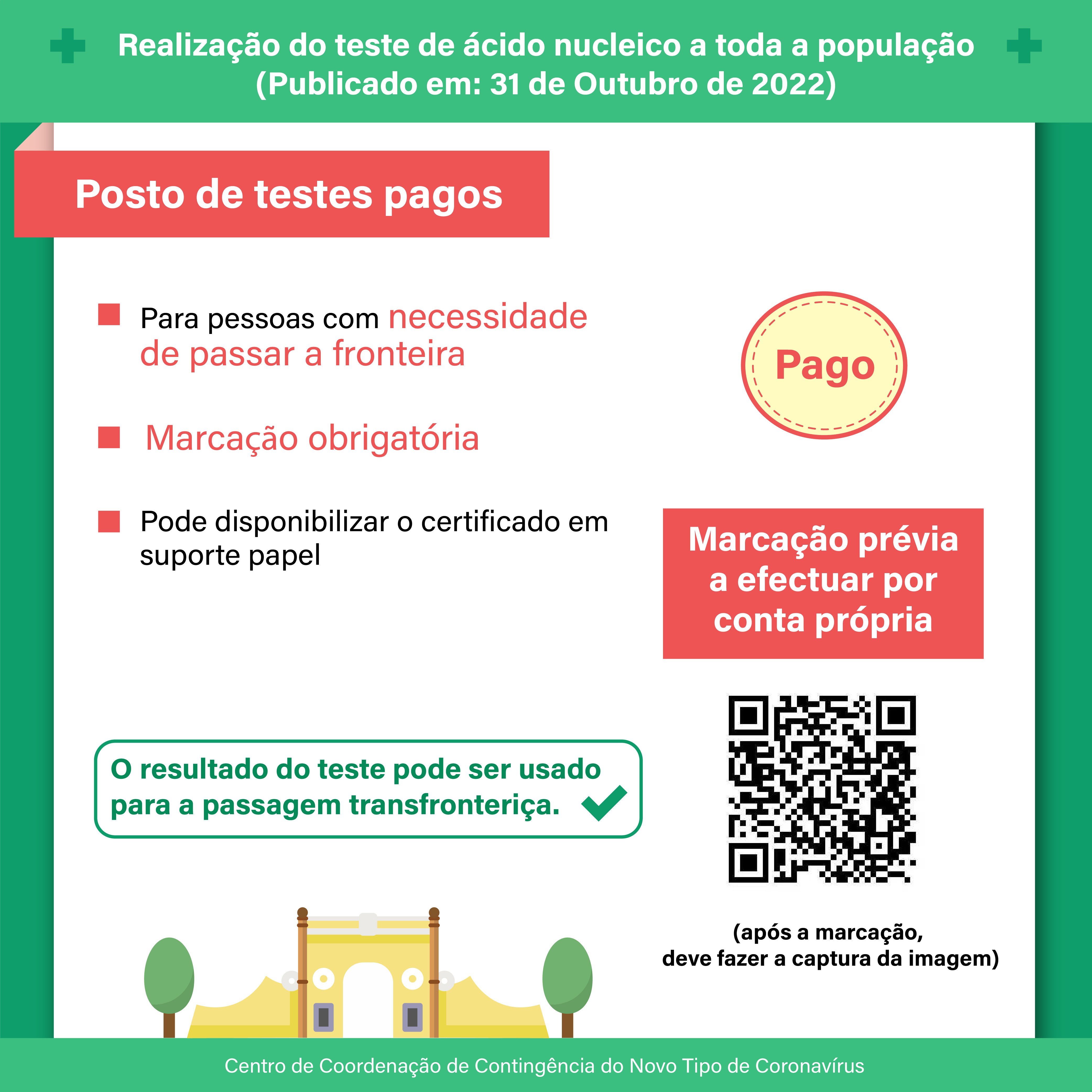 - Dispõem postos de testes destinados às pessoas com necessidades especiais, postos de testes gerais (com marcação obrigatória), postos de testes pagos (com marcação obrigatória).