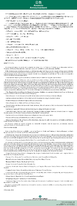 A partir da 01h00 do dia 02 de Novembro de 2022 implementação e cancelamento de medidas antiepidémicas para quem tenha estado em diversas áreas do Interior da China
