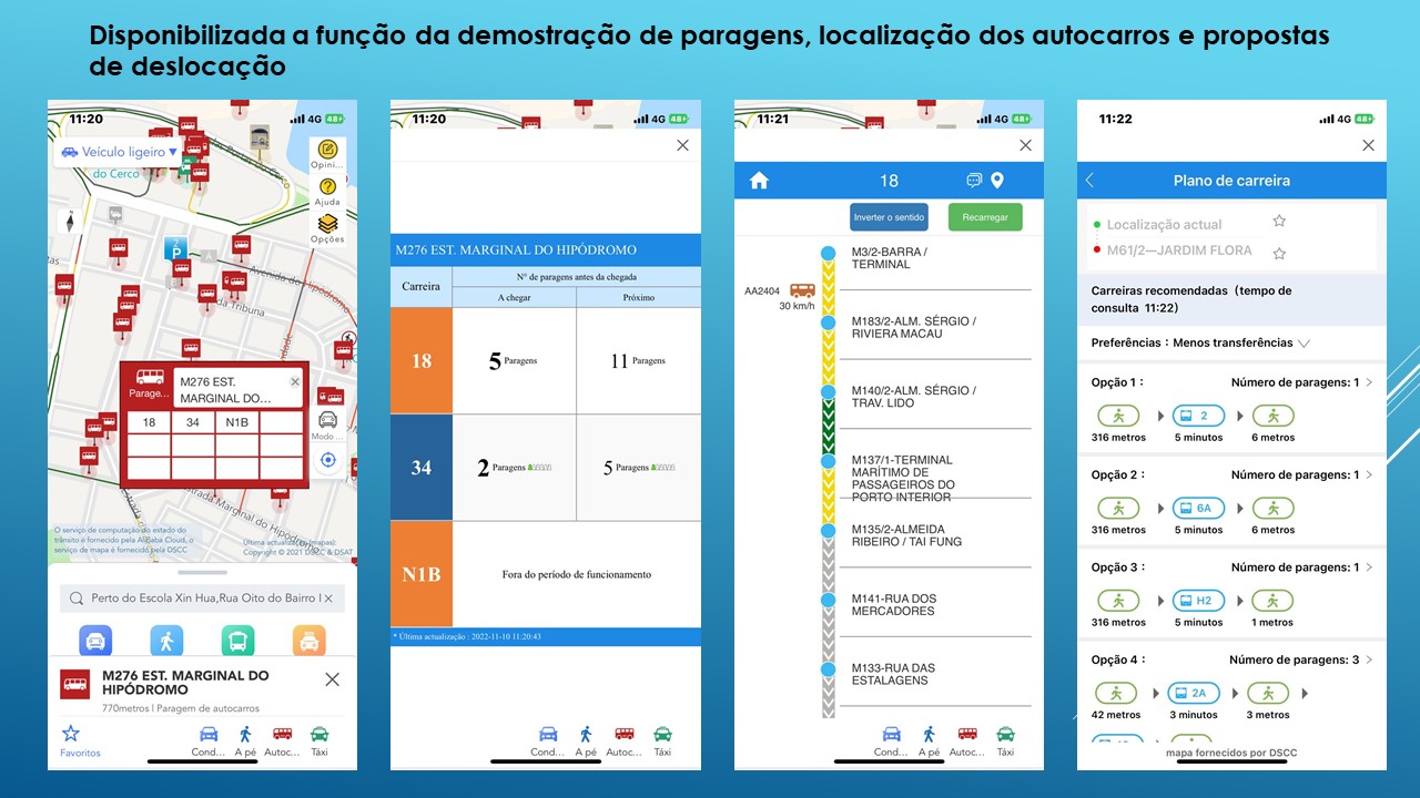 Em consonância com as medidas de liberalização do turismo, a DSAT está a comunicar proactivamente com os serviços de turismo para se integrar na aplicação mais pontos turísticos e arquitecturas representativas, entre outros, permitindo aos utilizadores planearem, de imediato, os seus itinerários através da aplicação.