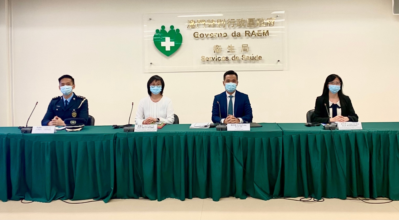 Estiveram presentes na conferência de imprensa: o Director dos Serviços de Saúde, Dr. Lo Iek Long, a Chefe do Departamento de Comunicação e Relações Externas da Direcção dos Serviços de Turismo, Dr.ª Lau Fong Chi, a Chefe da Divisão de Prevenção e Controlo de Doenças Transmissíveis do CDC dos Serviços de Saúde, Dr.ª Leong Iek Hou e o Chefe da Divisão de Relações Públicas do CPSP, Dr. Lei Tak Fai.