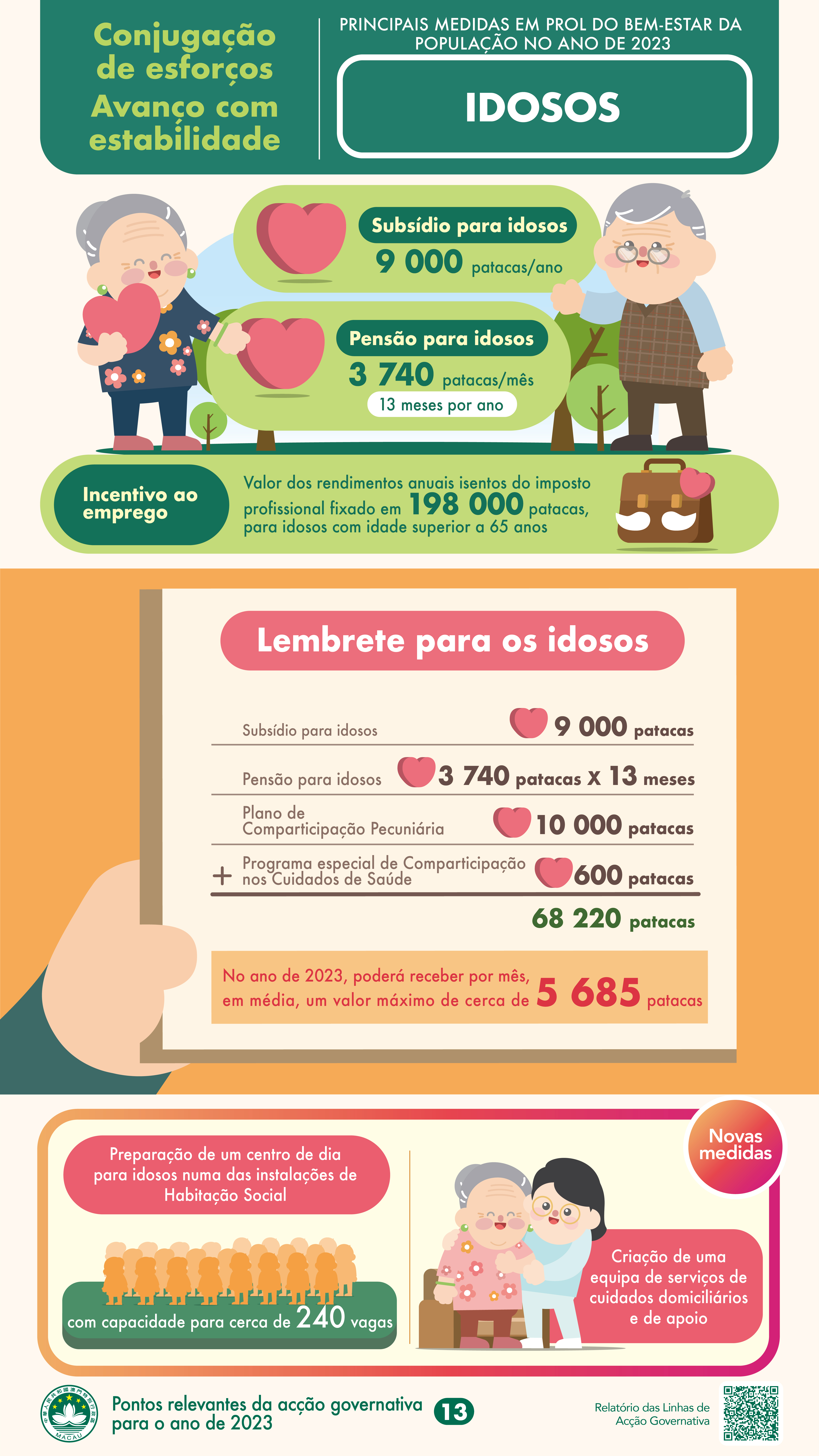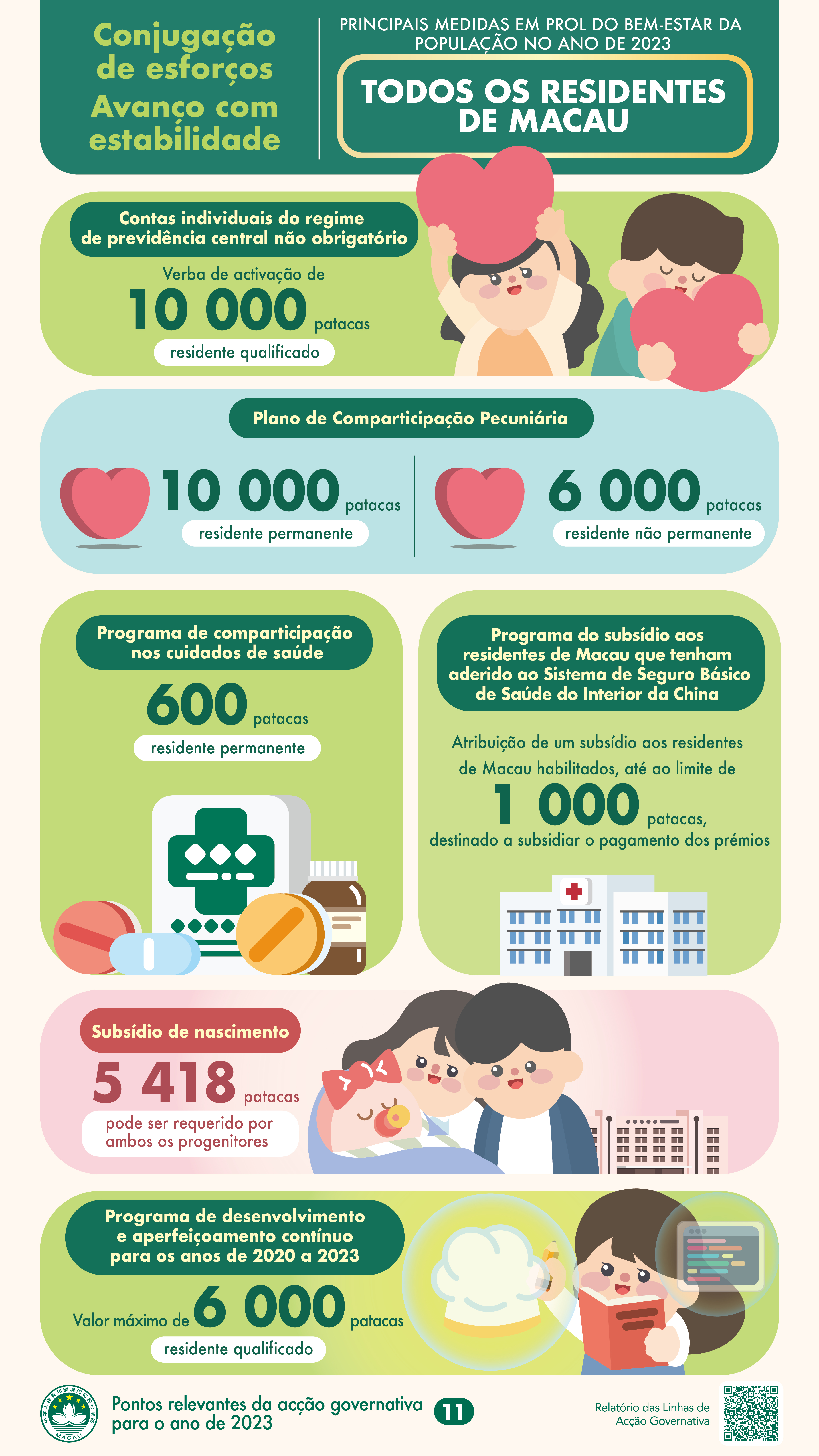 • Principais medidas em prol do bem-estar da população no ano de 2023: Todos os residentes de Macau(1)