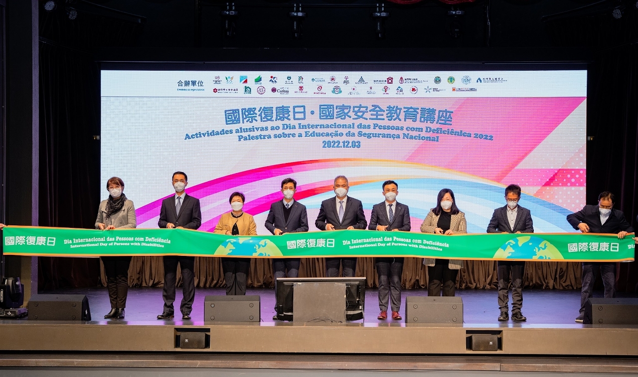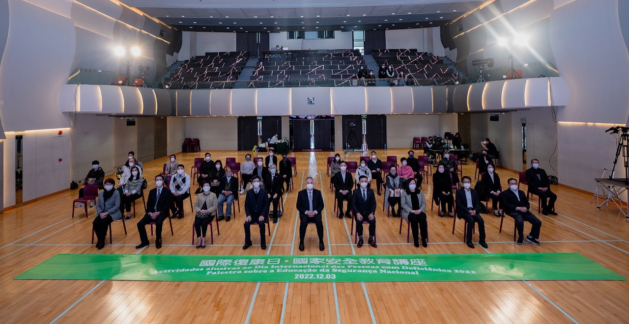 Para assinalar o “Dia Internacional das Pessoas com Deficiência” definido pelas Nações Unidas, o Instituto de Acção Socia (IAS), em cooperação com 7 serviços públicos e 23 associações de serviço social, organizou, na manhã do dia 3 de Dezembro, no auditório da Escola São Paulo, a “Actividade alusiva ao Dia Internacional das Pessoas com Deficiência 2022 – Palestra sobre a Educação da Segurança Nacional” , esperando que através da actividade, aumente o conhecimento dos grupos das pessoas com deficiência sobre a segurança nacional percebendo assim “Só existe lar se existir o País”. A iniciativa foi realizada online e offline contando com a participação de cerca de 500 pessoas, proveniente das 26 instituições de reabilitação. Atendendo às diferentes necessidades dos participantes nesta actividade, foi-lhes disponibilizado apoio em termos de equipamentos acessíveis de que necessitam, nomeadamente, vias livres de barreiras, interpretação em linguagem gestual, serviço de legendagem e audiodescrição, etc., a fim de pôr em prática a ideia “Participação plena e igualdade de oportunidades”.
