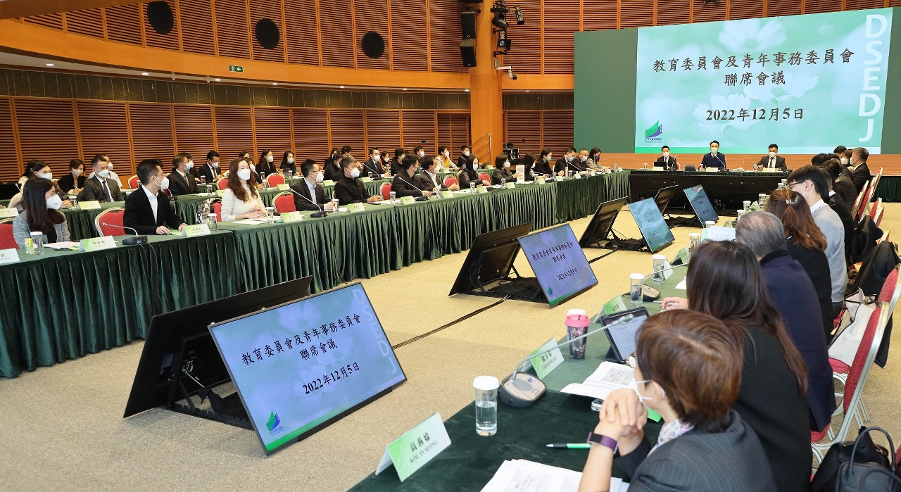 A conferência conjunta do Conselho de Educação e do Conselho de Juventude foi realizada na manhã do dia 5 de Dezembro de 2022, no Centro de Convenções do Centro de Ciência de Macau. Esta conferência foi presidida pelo vice-presidente dos dois conselhos e director da Direcção dos Serviços de Educação e de Desenvolvimento da Juventude (DSEDJ), Kong Chi Meng, tendo os chefes do Departamento de Estudos e Planeamento Educativos, Wong Kin Mou, do Departamento do Ensino Superior, Carlos Roberto Xavier, do Departamento do Ensino Não Superior, Luís Gomes e do Departamento de Juventude, Cheong Man Fai, apresentado, respectivamente, os trabalhos principais no âmbito da educação e da juventude de 2022 e 2023.