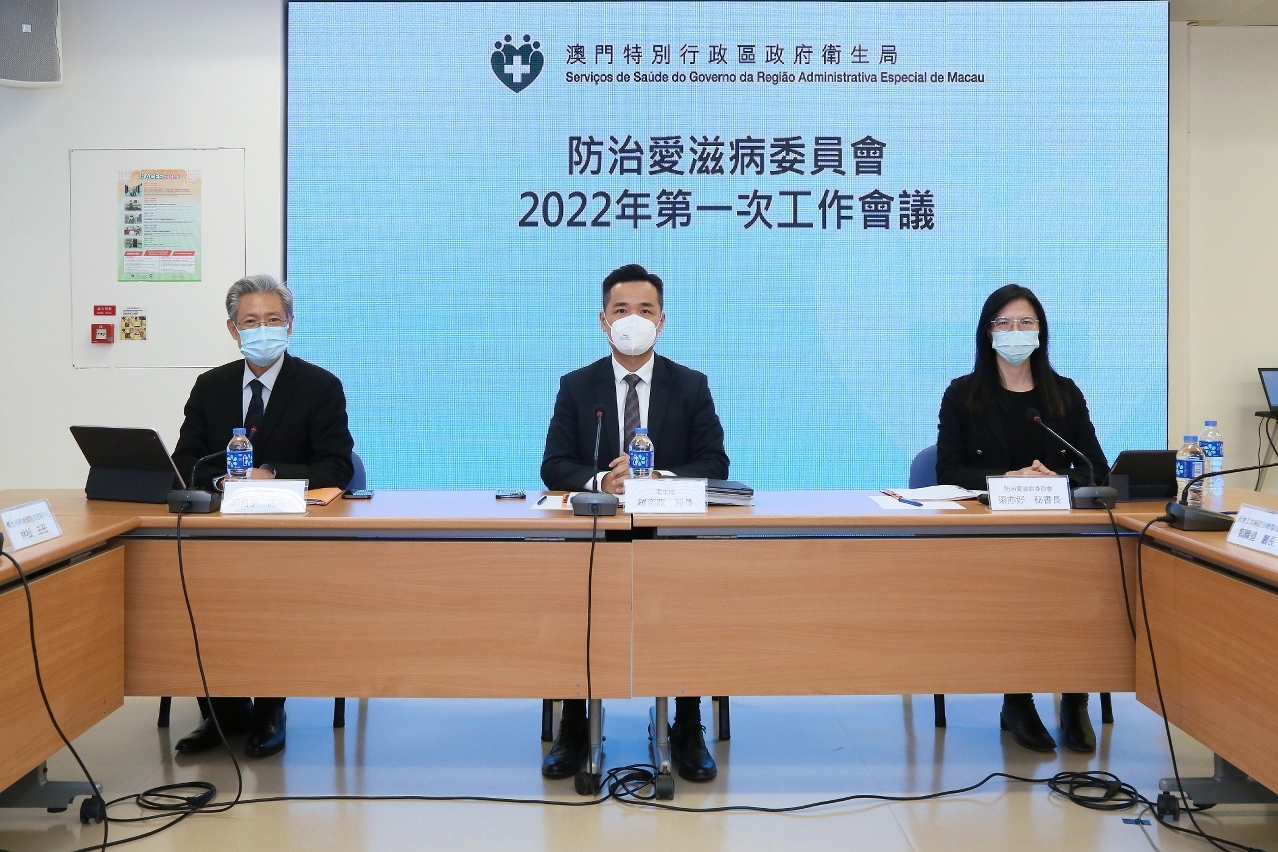 A Comissão de Luta Contra a SIDA do Governo da Região Administrativa Especial de Macau realizou, terça-feira (dia 6 de Dezembro), a 1.ª reunião de trabalho de 2022, presidida pelo Director dos Serviços de Saúde, Dr. Lo Iek Long, na qual estiveram também presentes: o Director do CHCSJ, Dr. Kuok Cheong U, o chefe do Departamento de Prevenção e Tratamento da Dependência do Jogo e da Droga do IAS, Dr. Cheang Io Tat, o chefe do Departamento do Ensino Não Superior da DSEDJ, Dr. Wong Ka Ki e a secretária-geral da Comissão de Luta Contra a SIDA, Dr.ª Leong Iek Hou, entre outros membros e representantes dos serviços públicos, instituições médicas, organizações e associações.